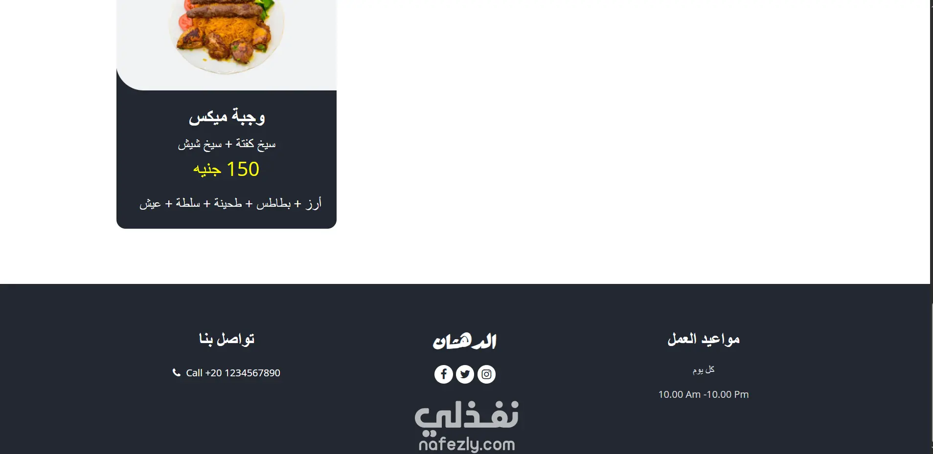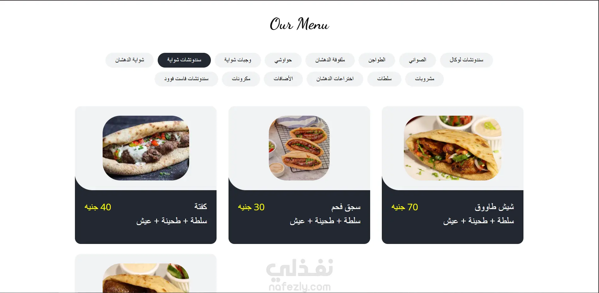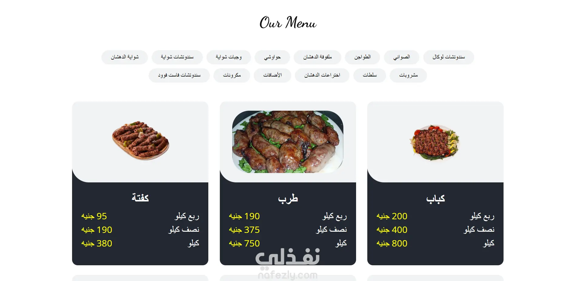 موقع إلكتروني لعرض قائمة طعام مطعم