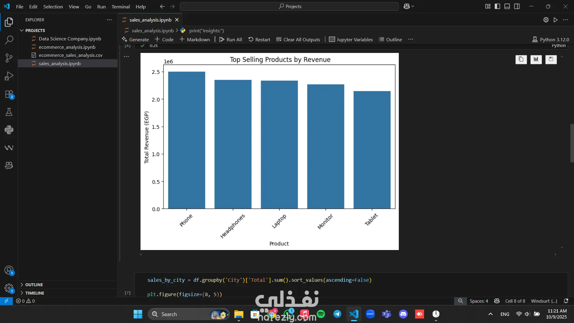 قمت بتحليل بيانات مبيعات متجر إلكتروني باستخدام Python و مكتبات Pandas و Seaborn لاستخراج أهم المؤشرات التجارية. تم تحليل المنتجات الأكثر مبيعًا، المناطق الأعلى ربحًا، والفترات الزمنية التي تحقق أكبر إيرادات.