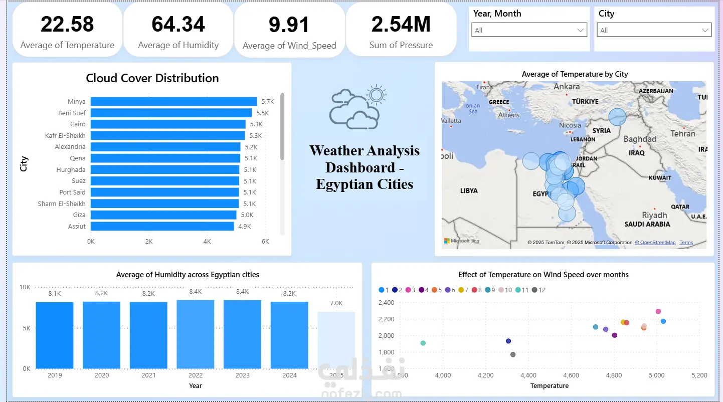 Weather Analysis Dashboard for Egyptian Cities using Power BI