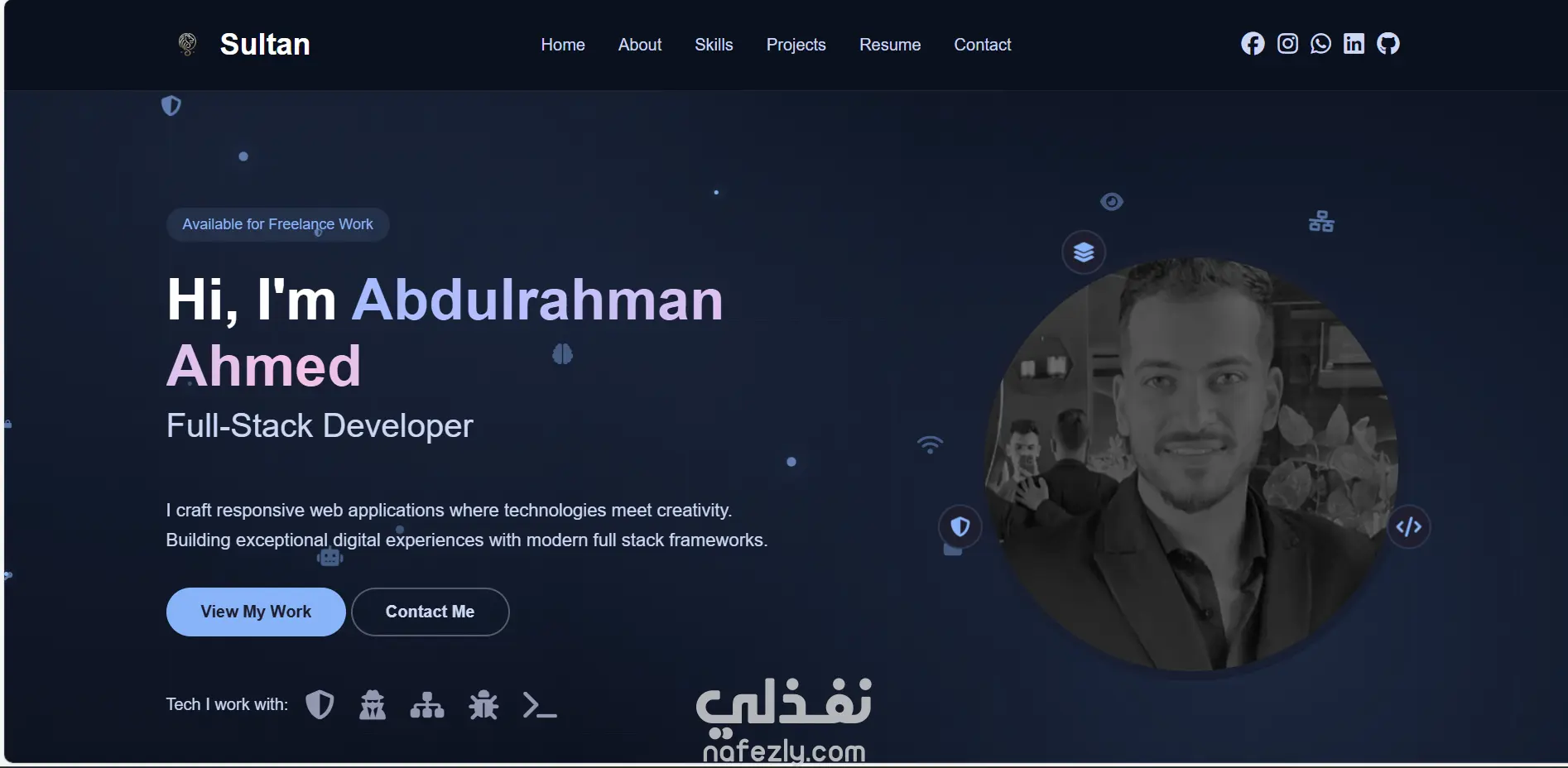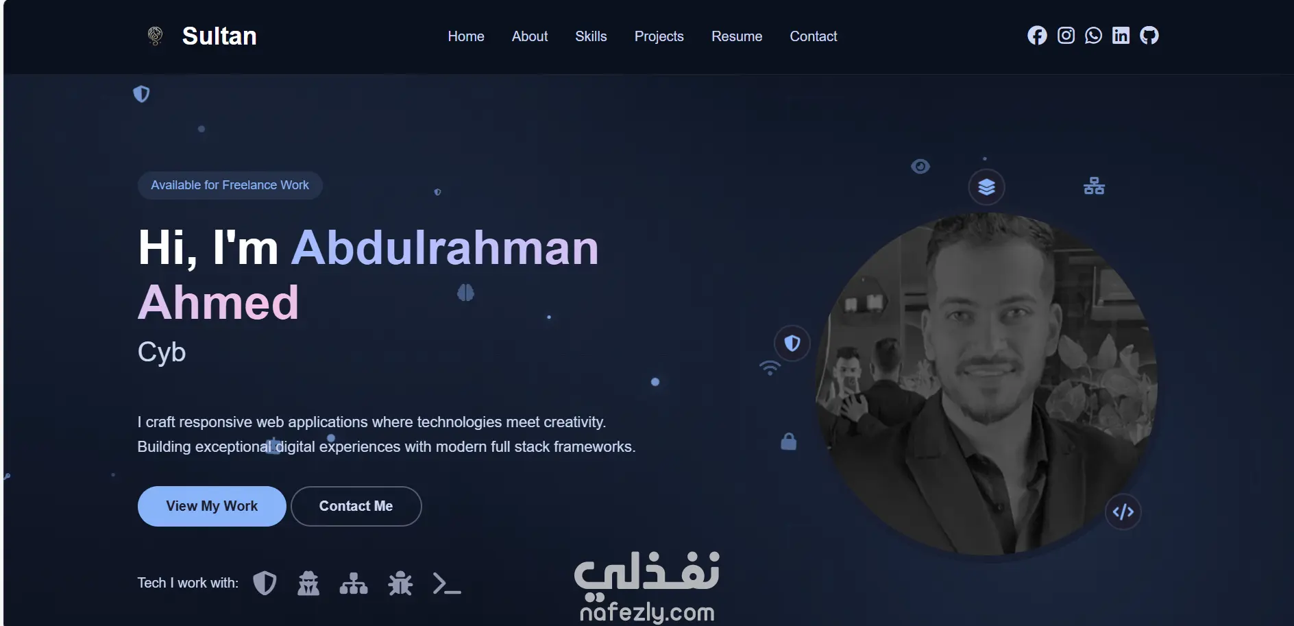 الموقع فيه أقسام للتعريف بالشخص، وعرض المهارات، والمشاريع السابقة، وطريقة التواصل، بحيث يكون واجهة مميزة تعبر عن هوية صاحبها وتظهر شغله بشكل منظم وواضح.