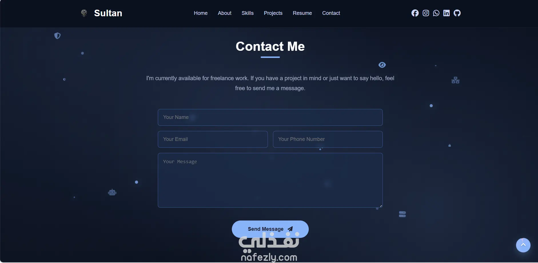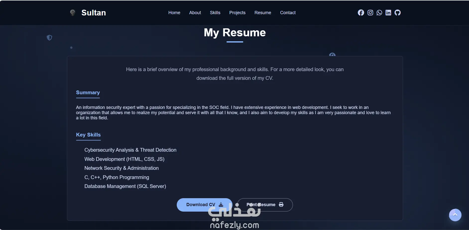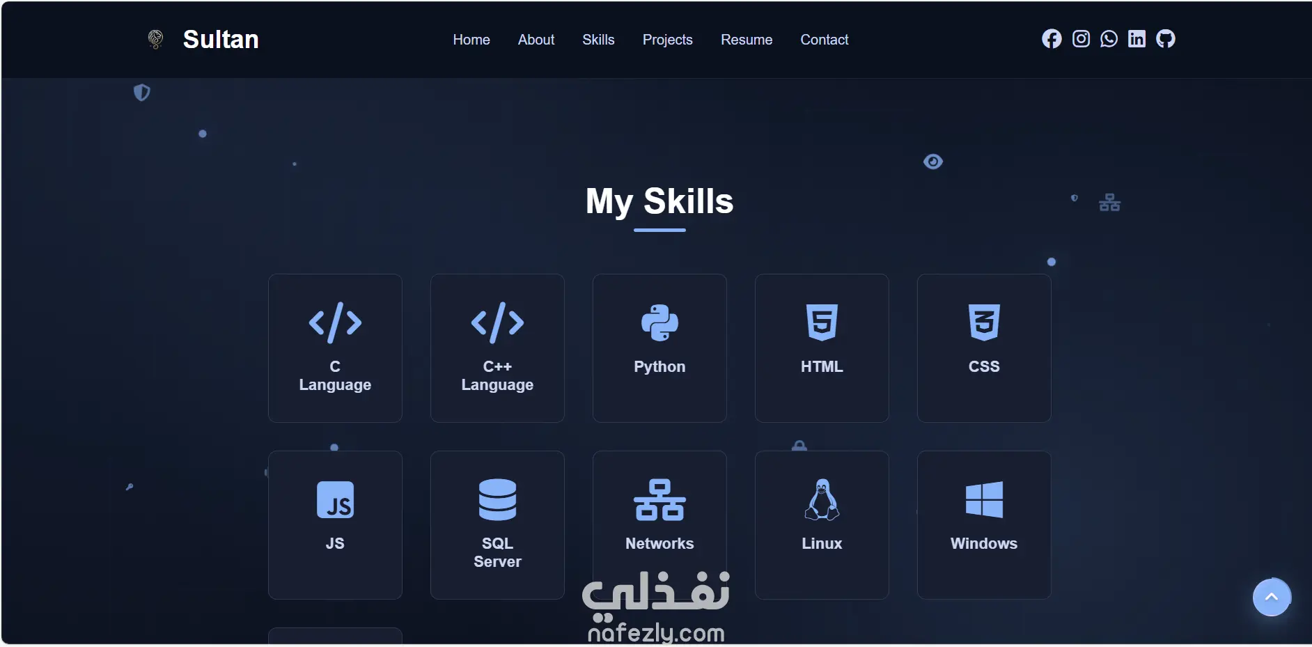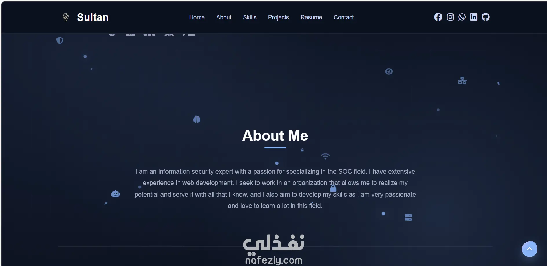 قمت بتصميم موقع بورتفوليو شخصي بسيط واحترافي يعرض المهارات والخبرات بطريقة جذابة وسهلة التصفح.