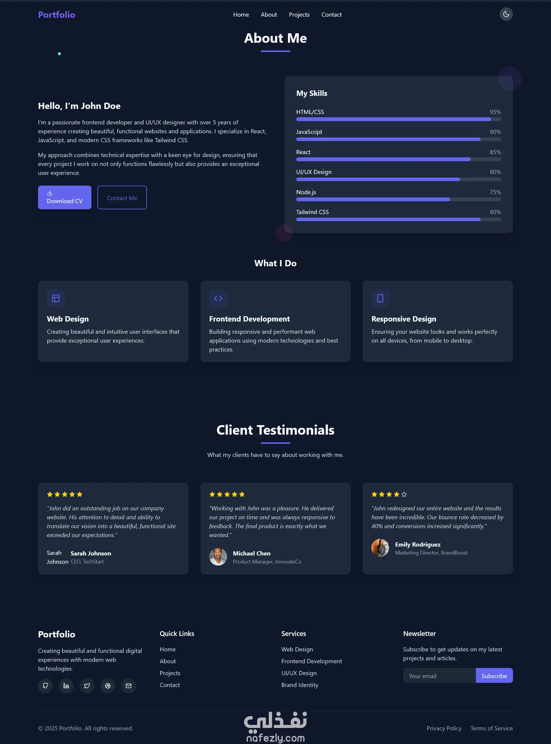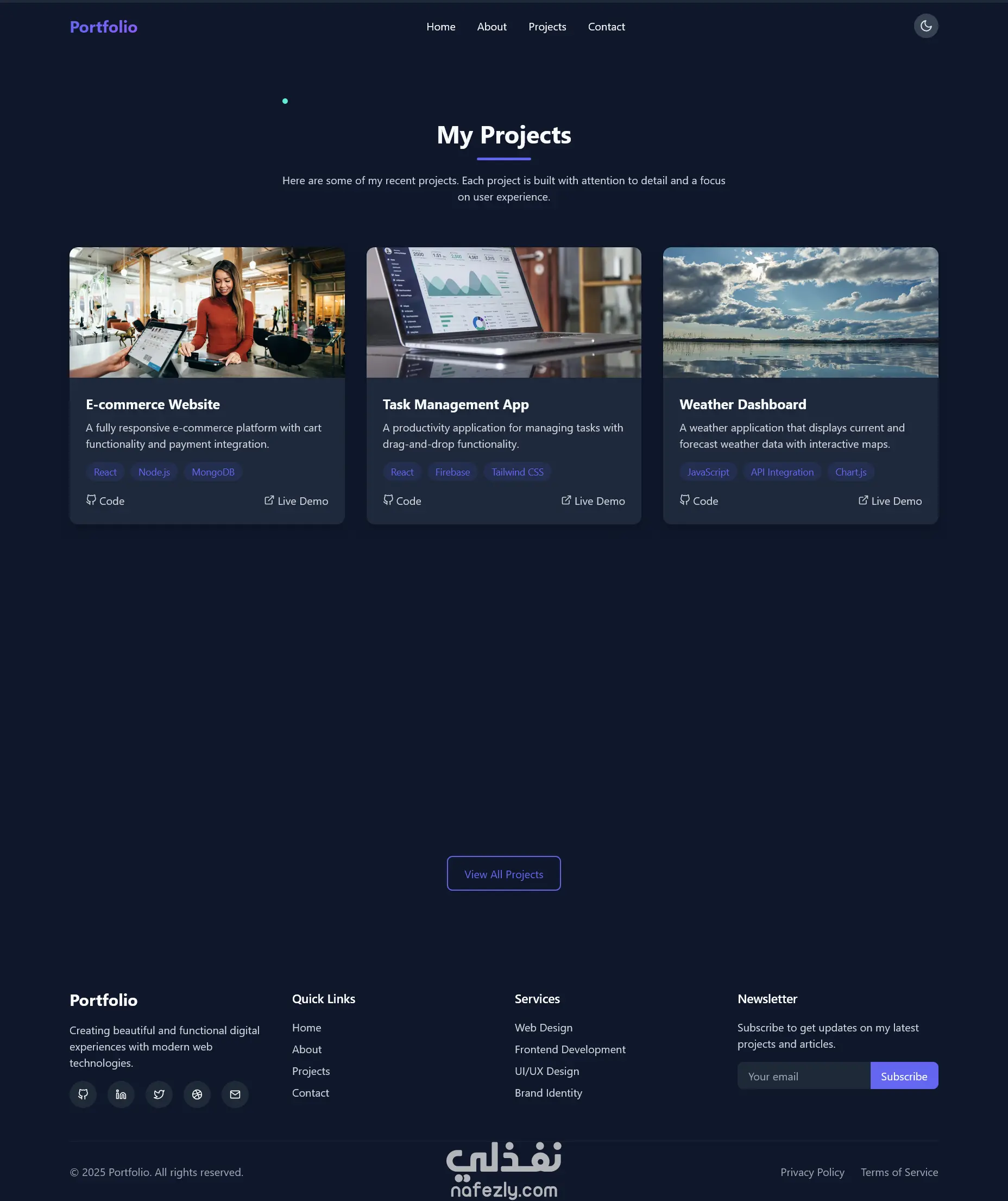 أقدّم لك موقع بورتفوليو شخصي احترافي ومتكامل يُبرز مهاراتك وأعمالك بطريقة أنيقة، تفاعلية، ومتجاوبة مع جميع الأجهزة.
