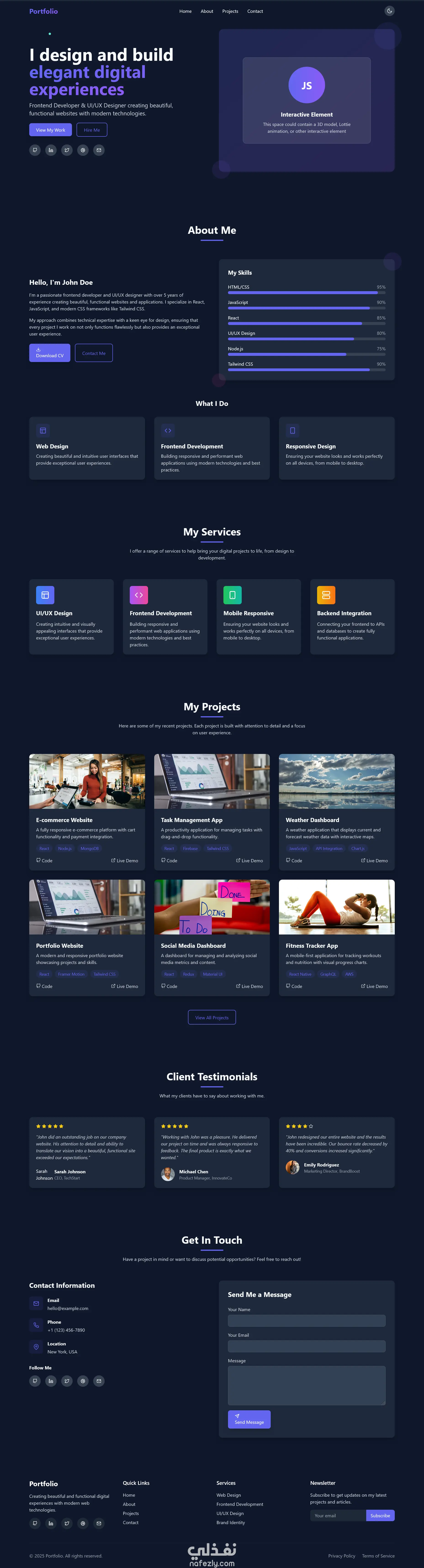 تصميم حديث وجذاب باستخدام React + Tailwind CSS