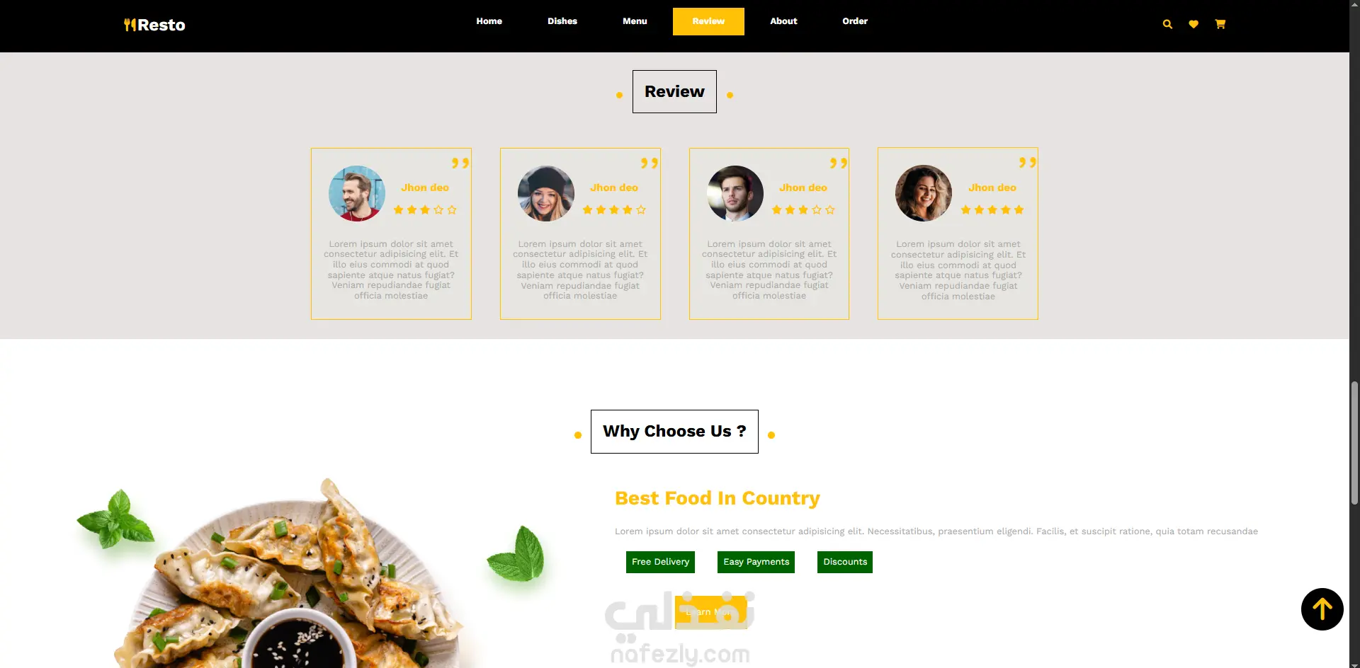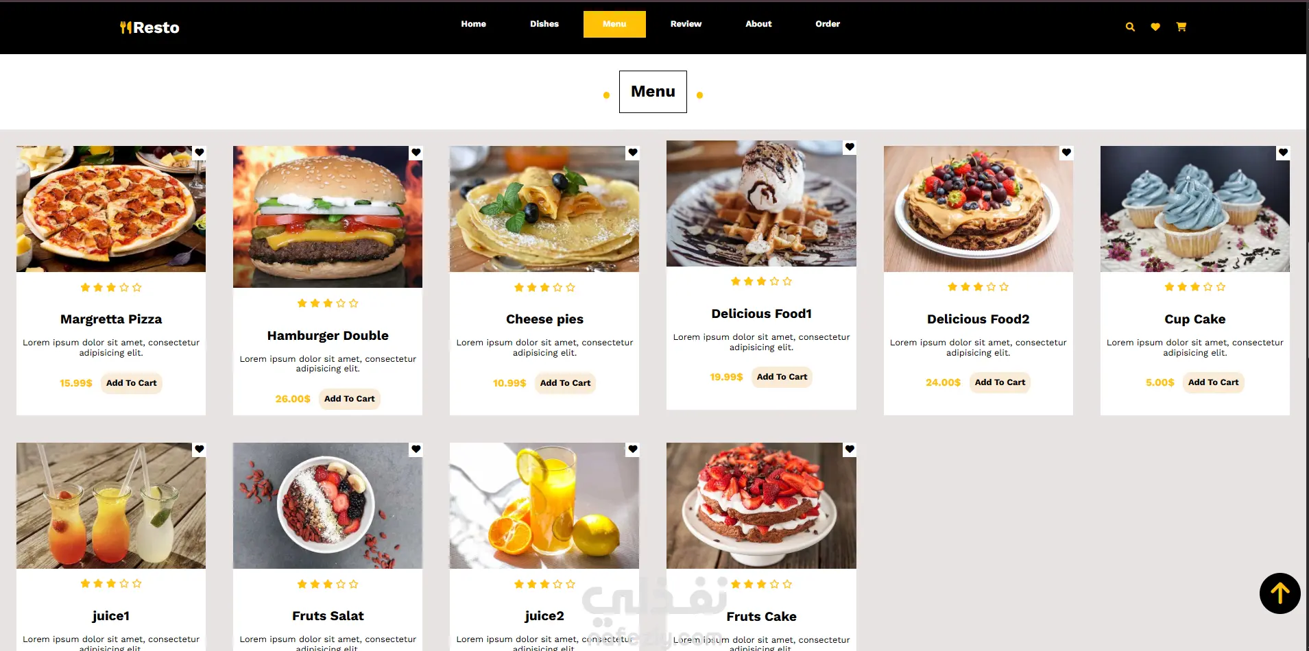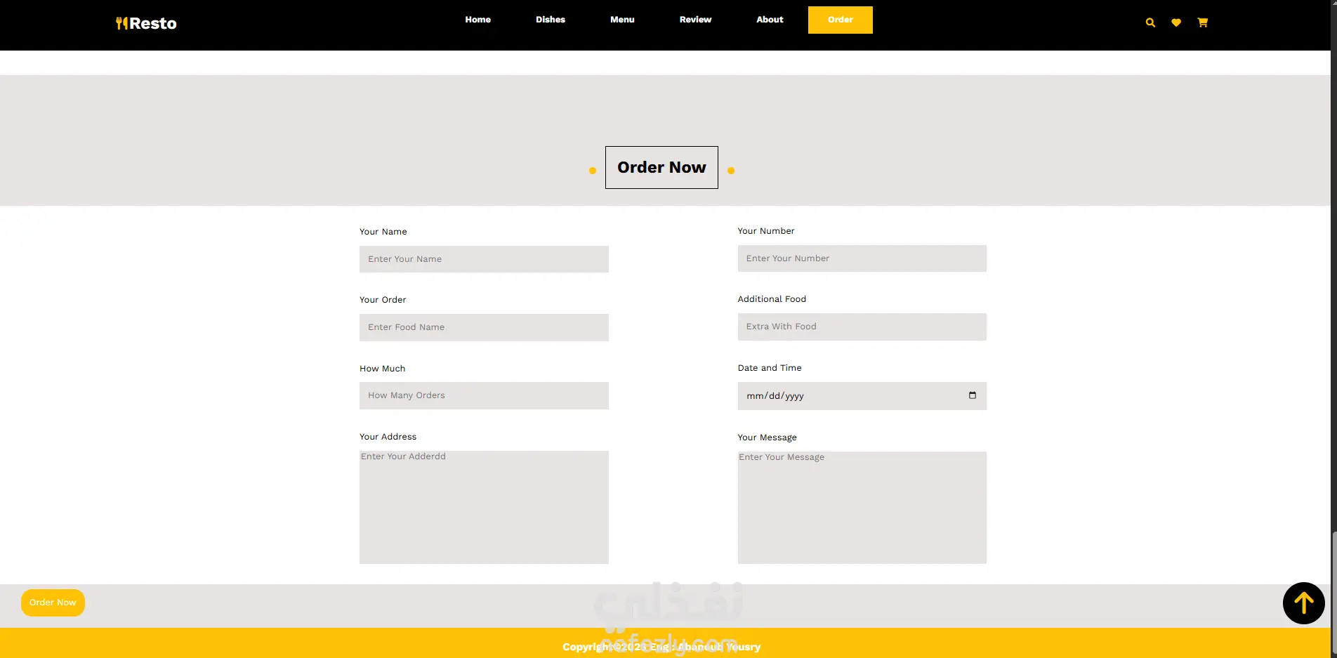 موقع ويب لمطعم يعرض المنتجات ويسهل عملية البيع والشراء للعملاء