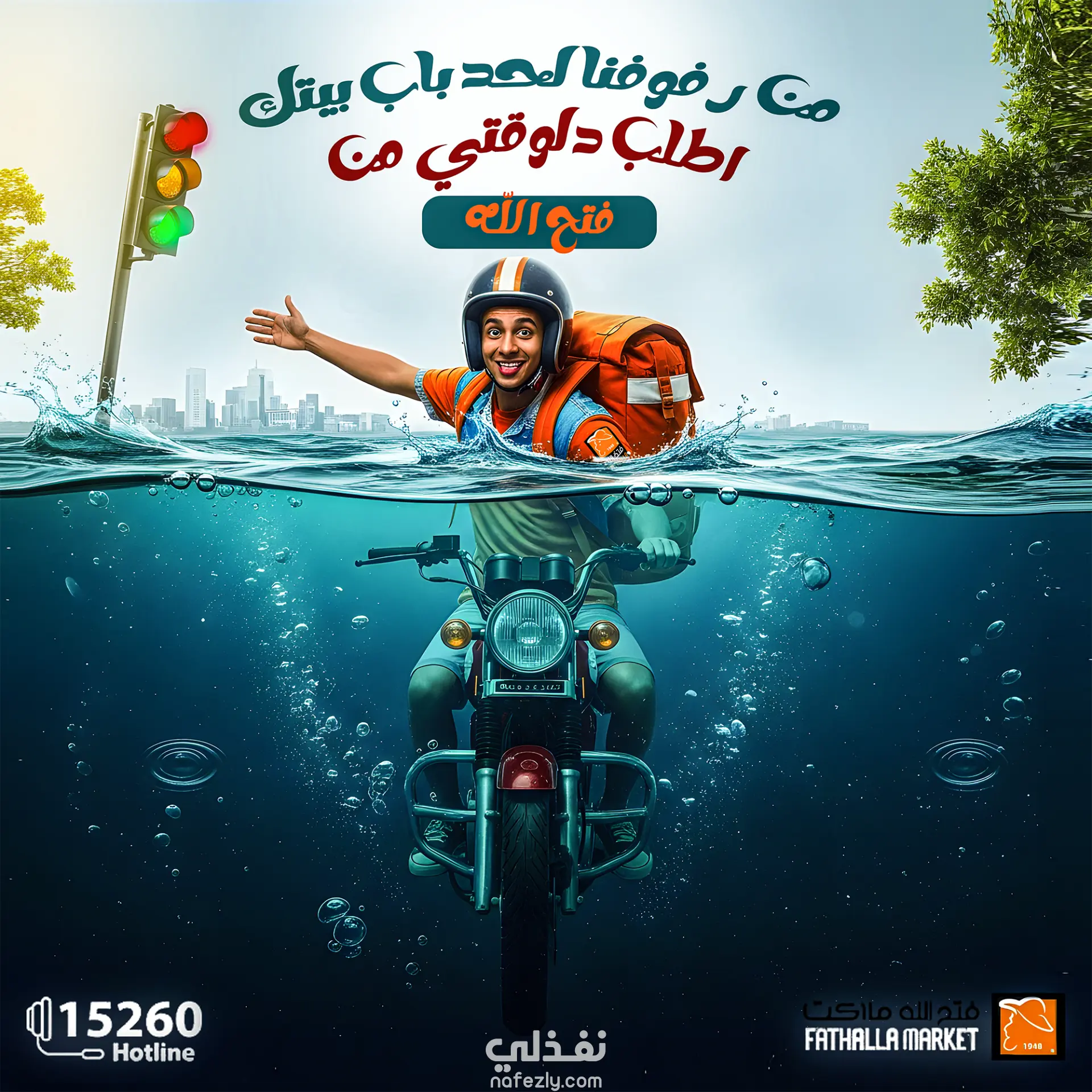 تصميم دعائي لشركة فتح الله ماركت عن خدمة التوصيل