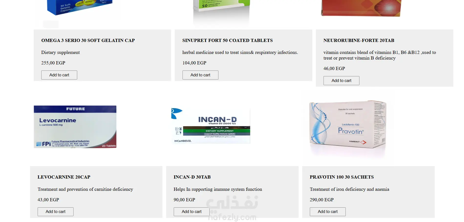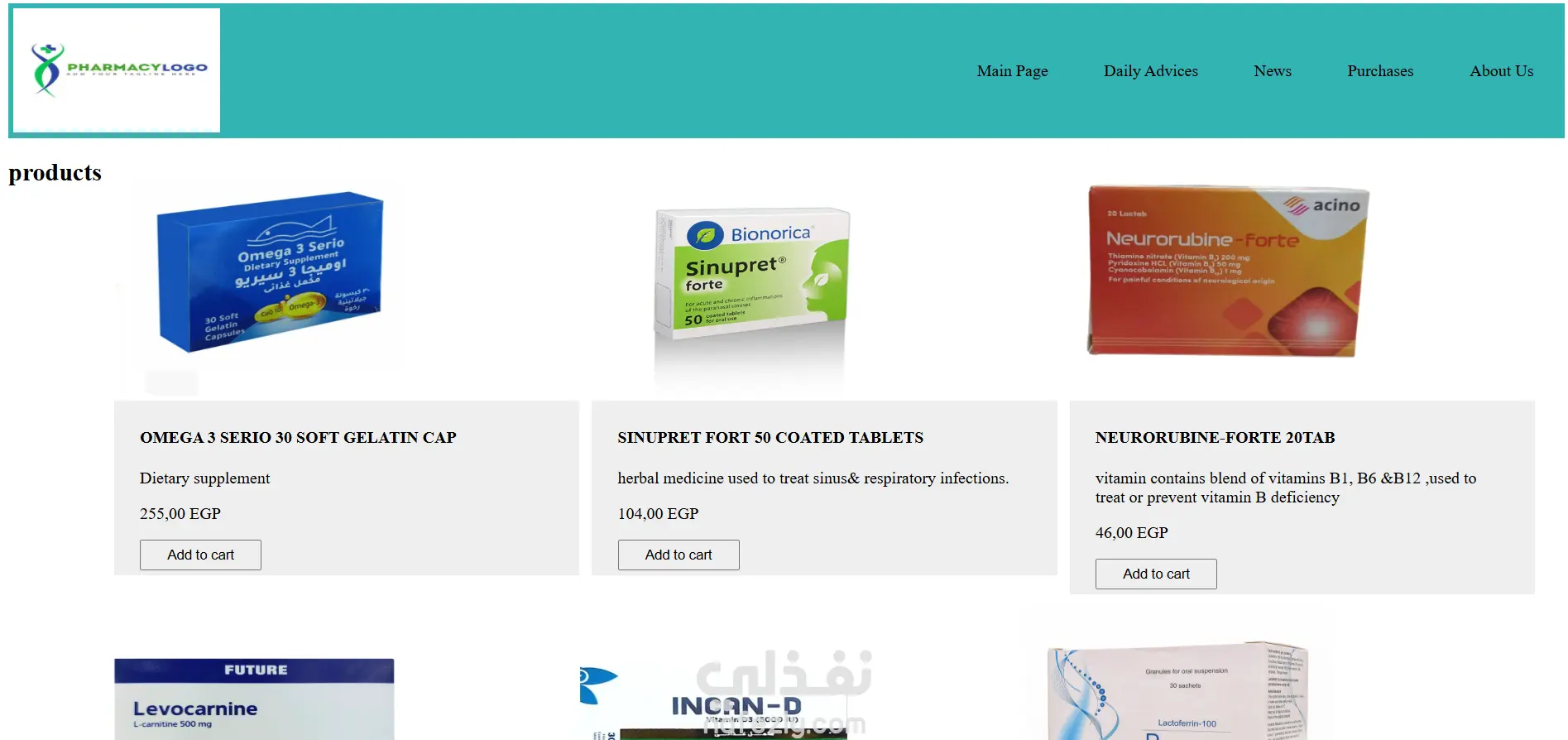 عمل صفحة ويب لصيدلية مع عرض المنتجات مع اظهار سعرها