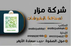 وصف المشروع: تصميم بطاقة عمل احترافية من وجهين (أمامي وخلفي) لـ "شركة مزار"، وهي شركة متخصصة في صناعة المفروشات.