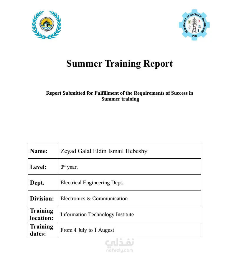 مقال احترافي لتدريب ميداني تابع لمجال هندسة الاتصالات