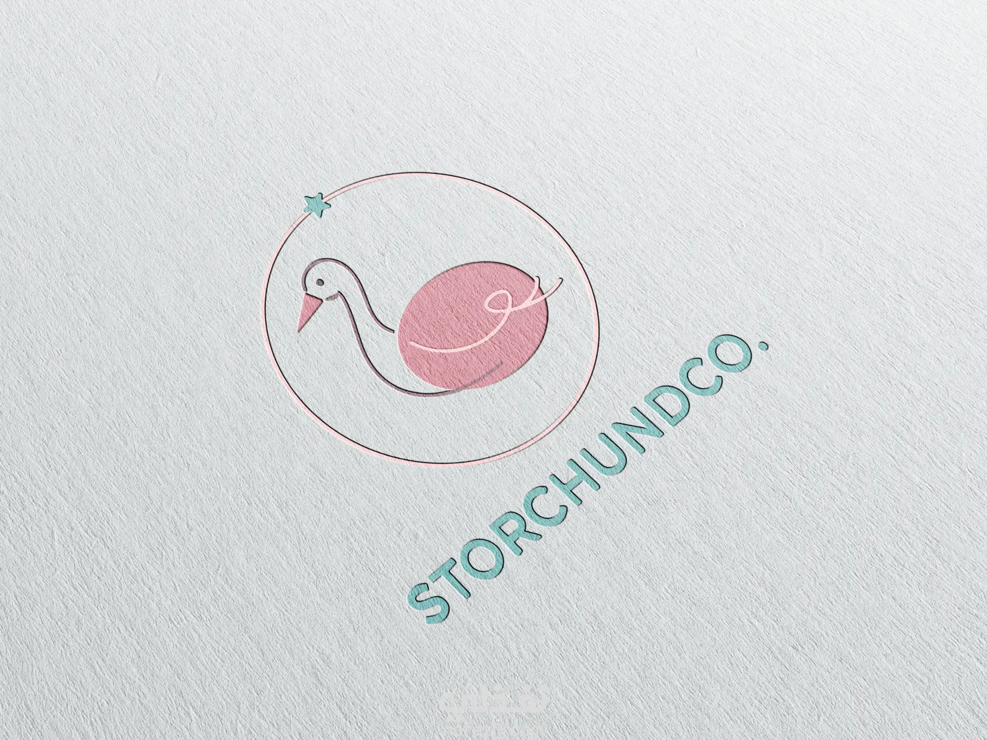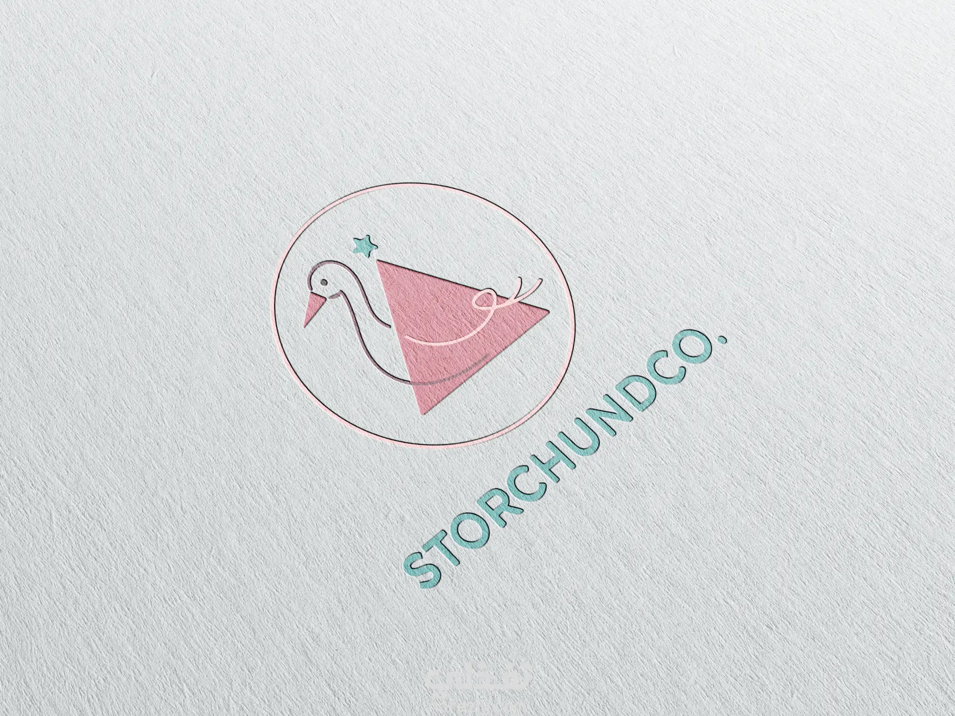 شعار وهمي لمحل ملابس اطفال يسمي .storchundco