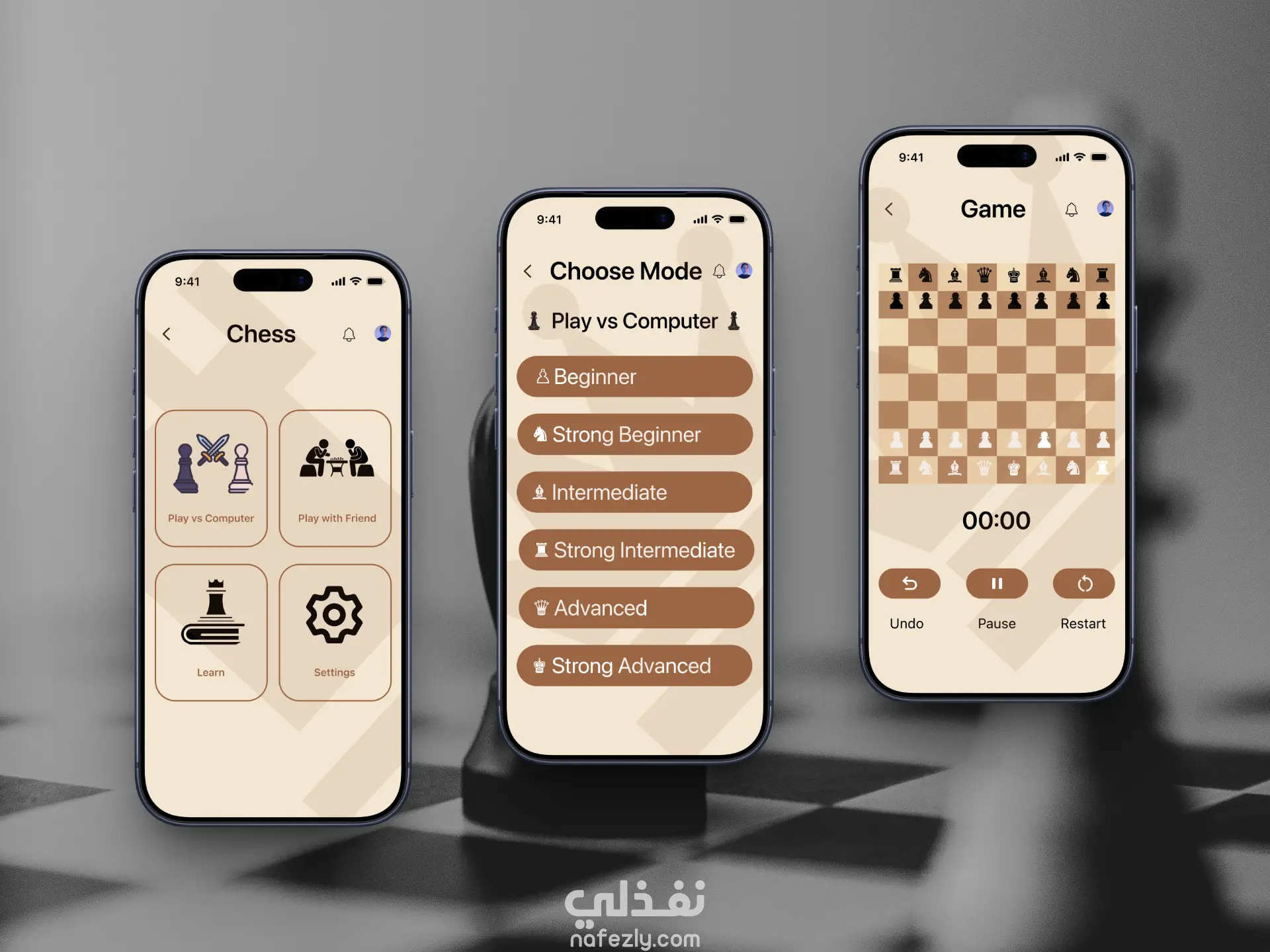 تصميم واجهة تطبيق لعبة شطرنج احترافية (Chess Game UI Design)