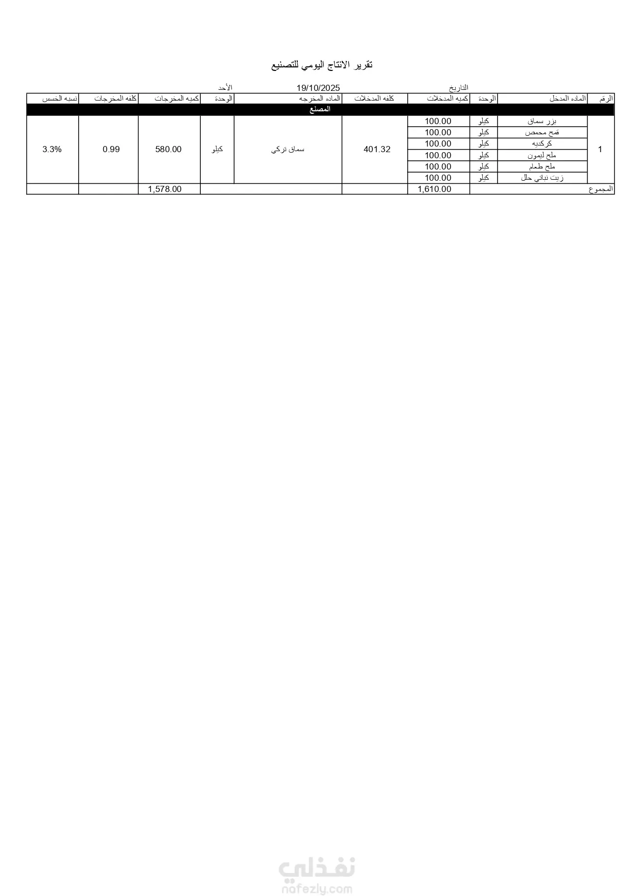 يتم ادخال المواد الاولية فقط بالشاشه الرئيسية و تظهر لك كلفه المادة المصنعه تلقائيا