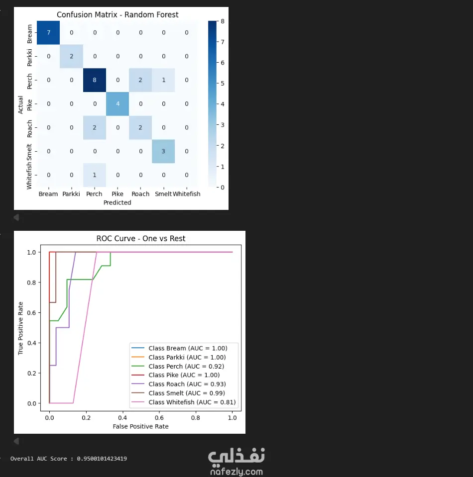 تدريب نماذج Linear Regression وRandom Forest Regressor وSupport Vector Regressor (SVR) للتنبؤ بوزن السمكة اعتمادًا على أبعادها.