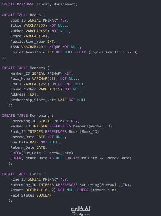 تصميم نظام إدارة مكتبة باستخدام SQL
