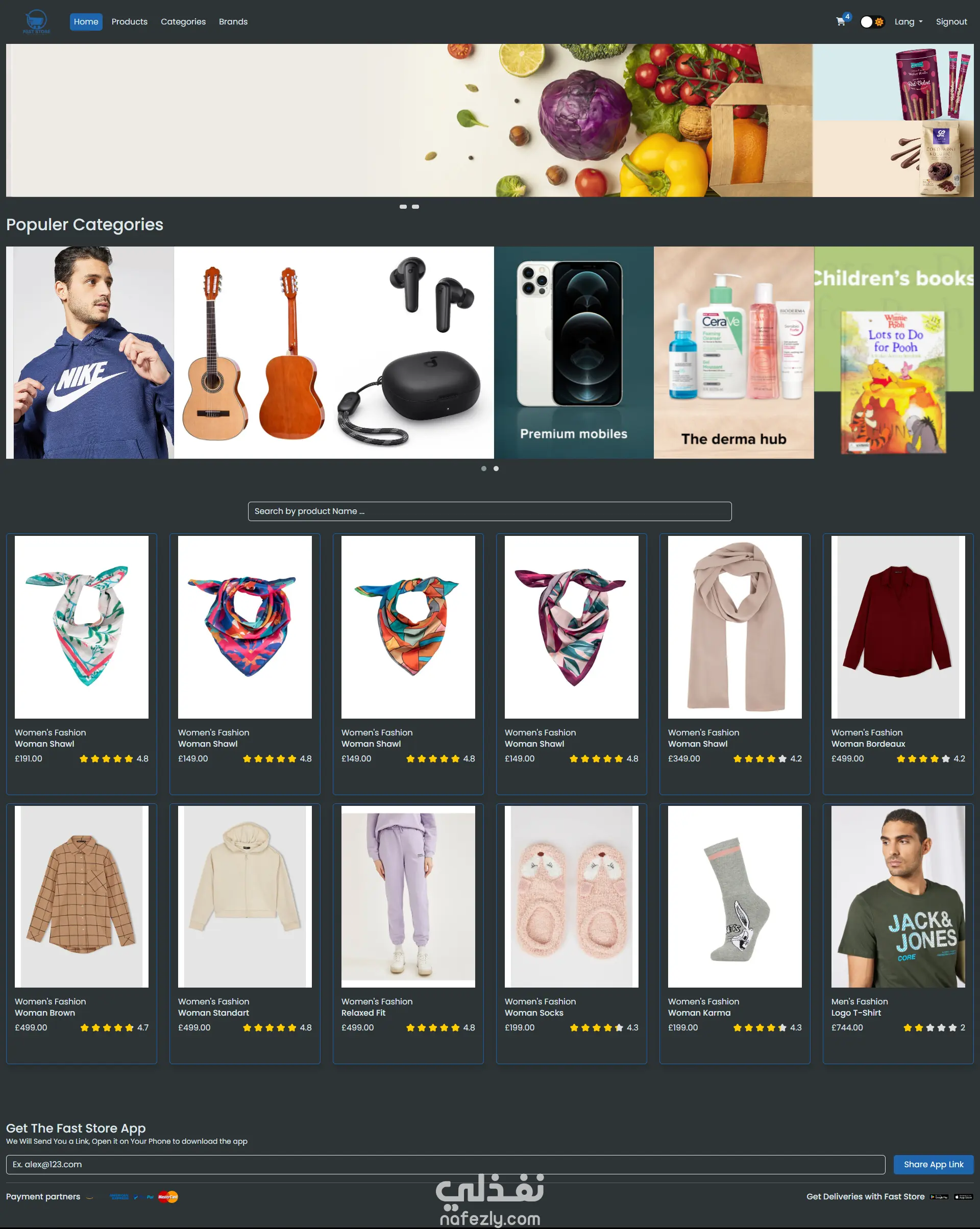 تم تطوير متجر إلكتروني احترافي بتصميم عصري وسرعة عالية في الأداء. الموقع يعرض المنتجات بطريقة منظمة مع إمكانية البحث والتصفح بسهولة من جميع الأجهزة، ويدعم اللغتين العربي والإنجليزي. الخصائص والمميزات: تصميم متجاوب بالكامل يعمل بسلاسة على الموبايل والكمبيوتر. عرض المنتجات حسب التصنيفات والعلامات التجارية. بحث سريع عن المنتجات بالاسم أو القسم. نظام تقييم المنتجات وعرض متوسط التقييم. سلايدر ديناميكي للفئات والعروض المميزة. دعم لغتين (عربي / إنجليزي). عرض طرق الدفع والشركاء في أسفل الصفحة. إمكانية إرسال رابط تحميل التطبيق عبر البريد الإلكتروني. أداء سريع وتجربة مستخدم سلسة بفضل الدمج بين Angular وPHP. التقنيات المستخدمة: Front-End: Angular 17, TypeScript, HTML5, SCSS, PrimeNG Back-End: PHP (Laravel / Native PHP) Database: MySQL
