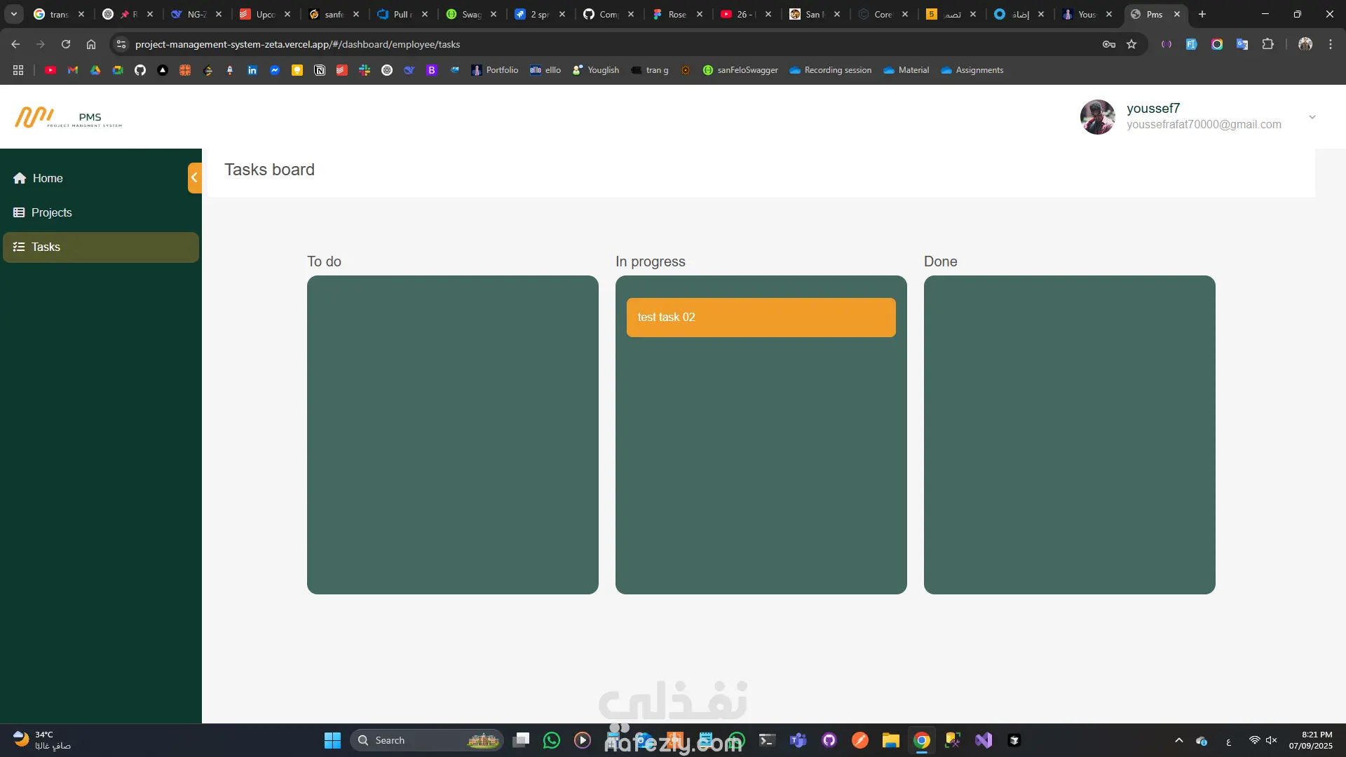 تم تطوير تطبيق ويب لإدارة المشاريع والمهام بطريقة احترافية تشبه Trello، حيث يمكن للمستخدمين متابعة سير العمل وتنظيم المهام داخل لوحة تفاعلية (Kanban Board) مع واجهة استخدام سهلة وأنيقة.