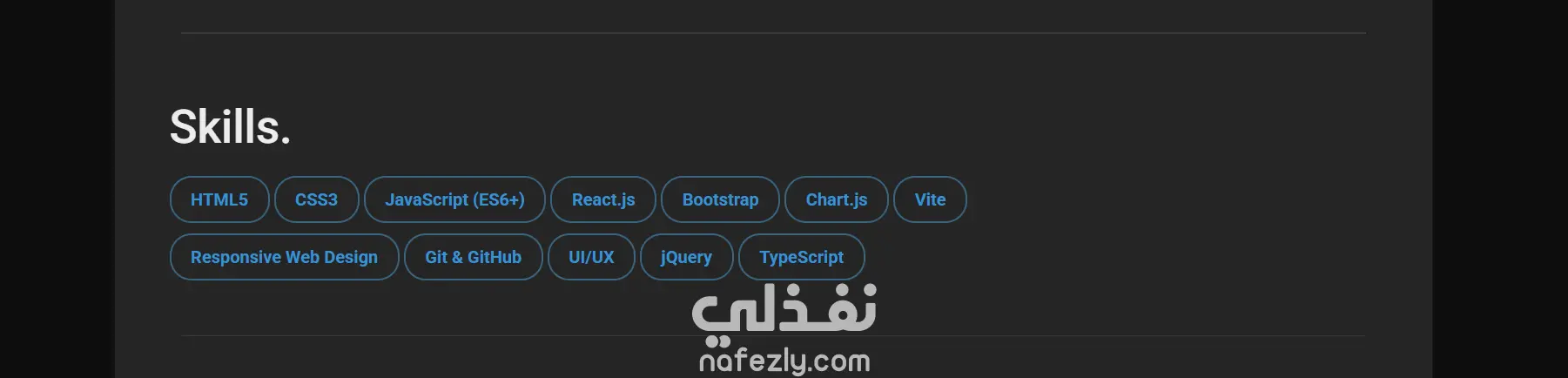 تم تصميمه باستخدام HTML5 وCSS3 وJavaScript مع دعم الوضع الداكن (Dark Mode) وواجهة متجاوبة (Responsive Design) تناسب جميع الأجهزة.