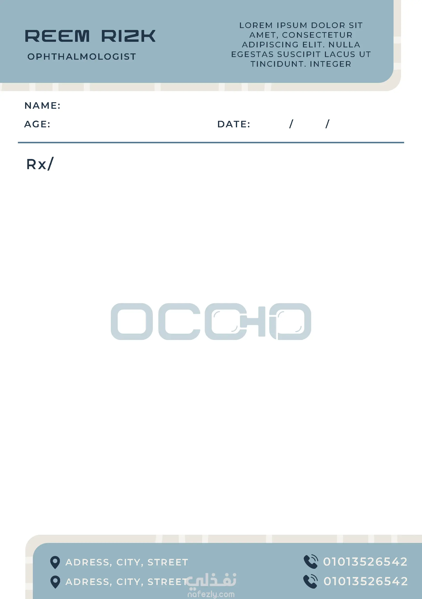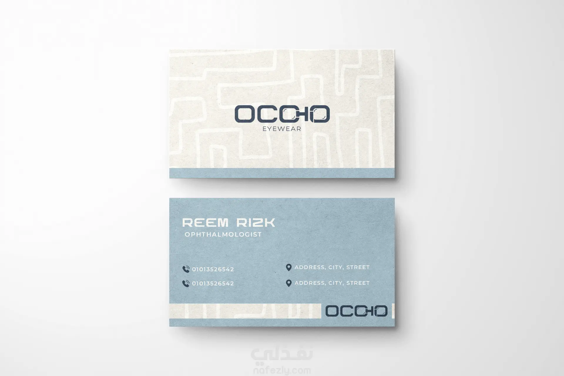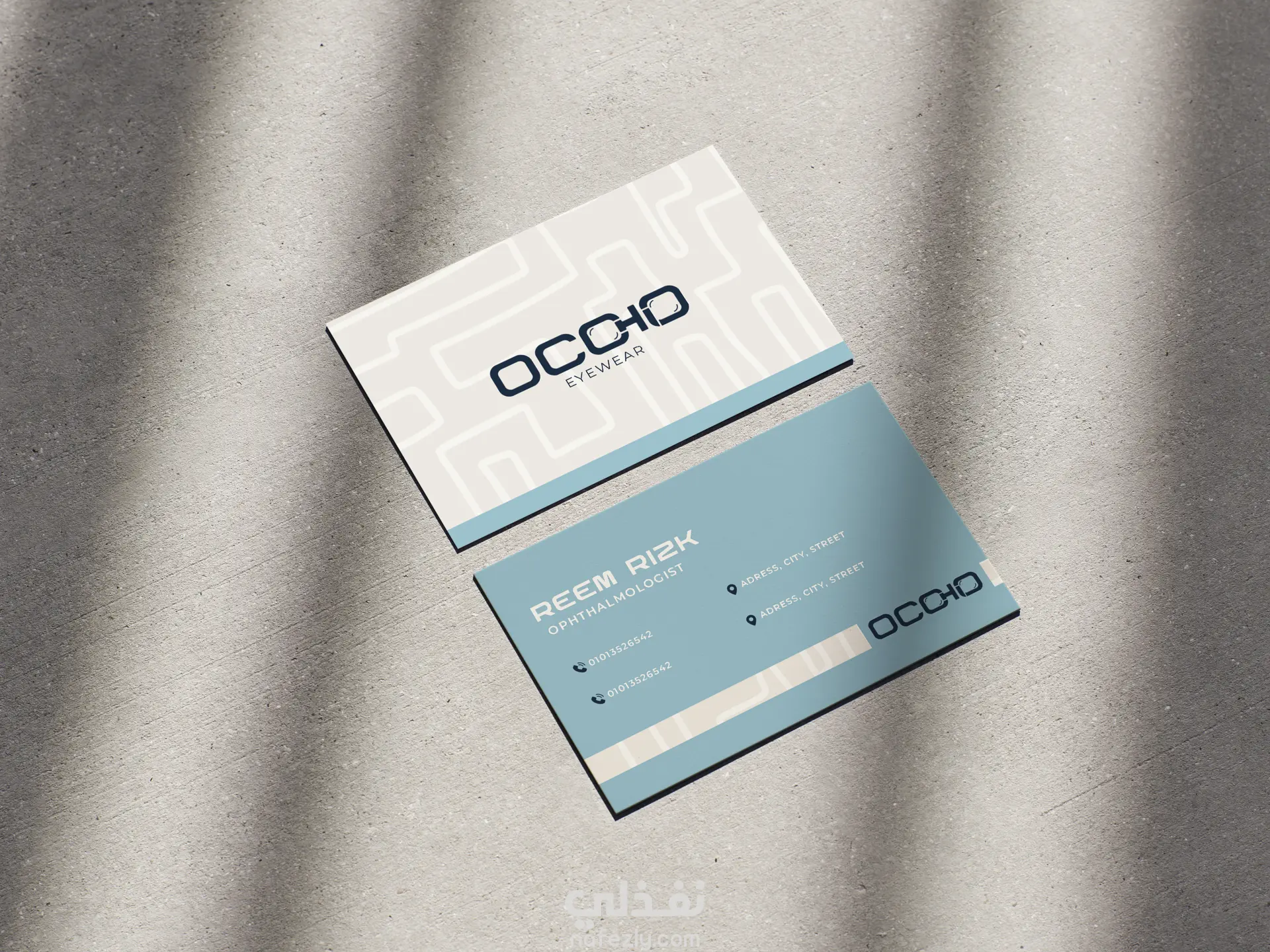 لوجو وبعض منتجات لعيادة عيون OCCHIO ومتجر النظارات التابع لها