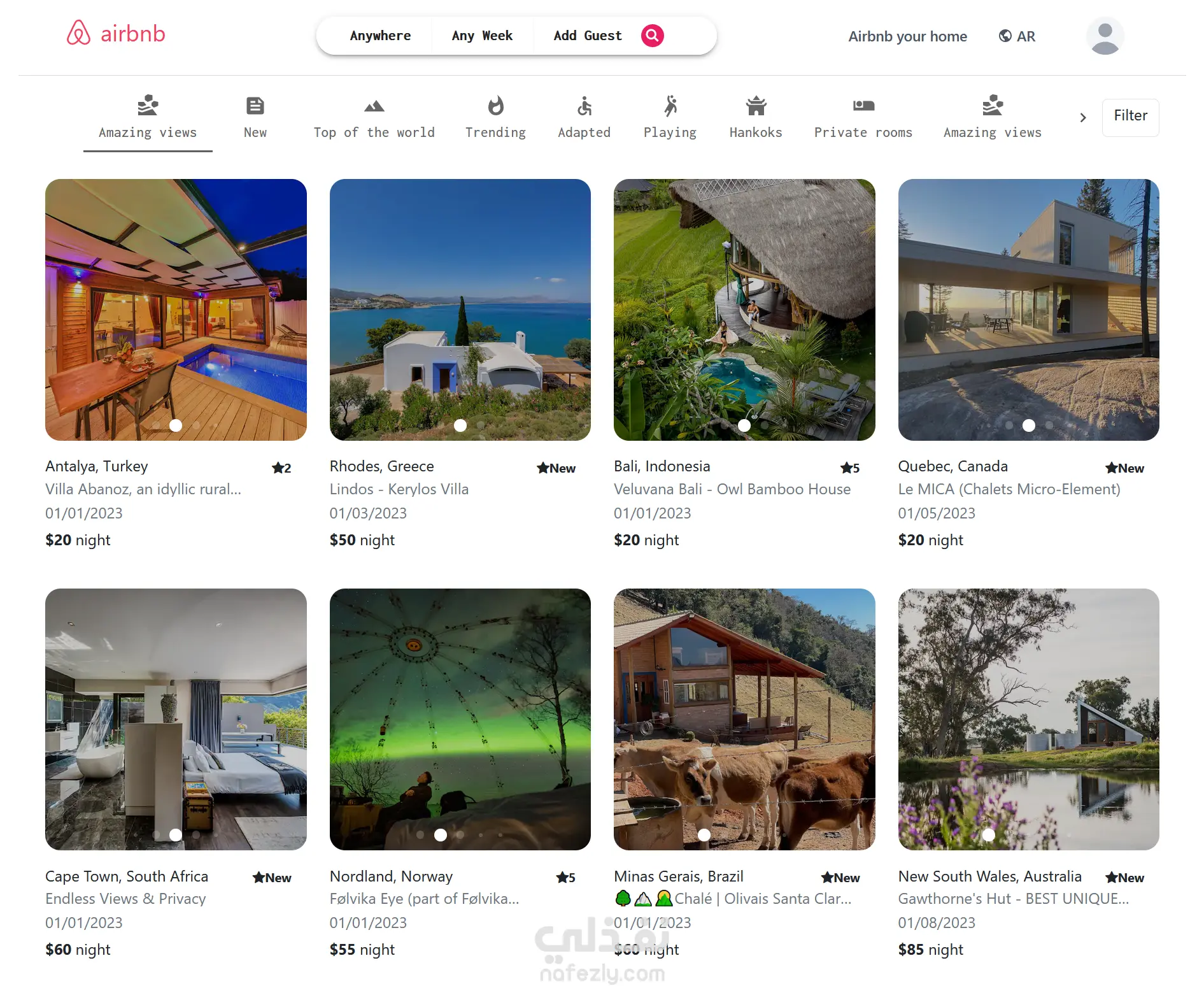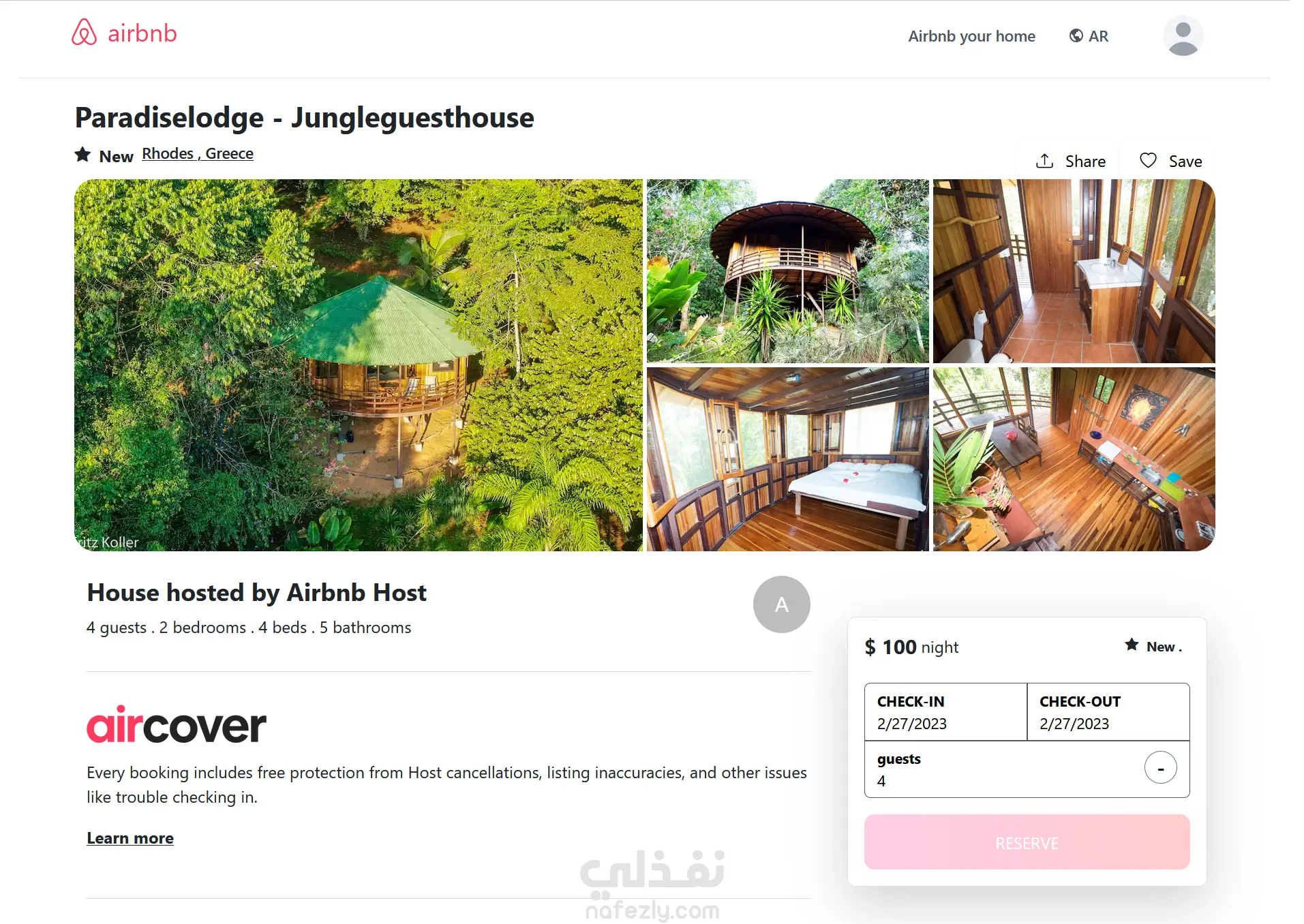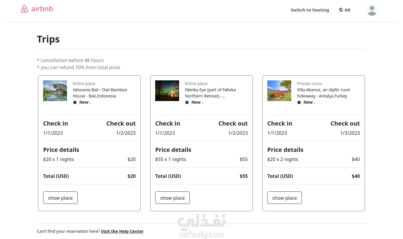 Full functionality Airbnb built with Reactjs for the front and Nodejs & MongoDB for the backend . Support two languages English and Arabic.