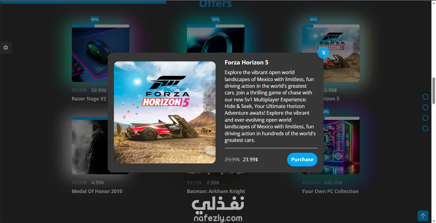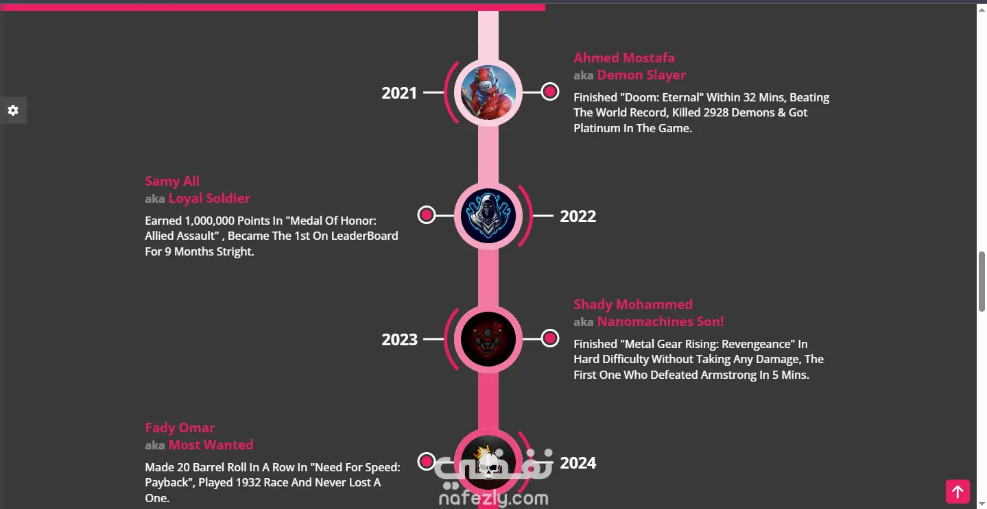 عند الضغط على أي لعبة، يظهر مربع منبثق (نافذة توضيحية) يعرض تفاصيل اللعبة بشكل منسق وواضح. كما يوجد شريط تقدم (Progress Bar) في أعلى الصفحة يُظهر حالة تحميل المحتوى، ليمنح المستخدم تجربة مريحة وسلسة أثناء التصفح.