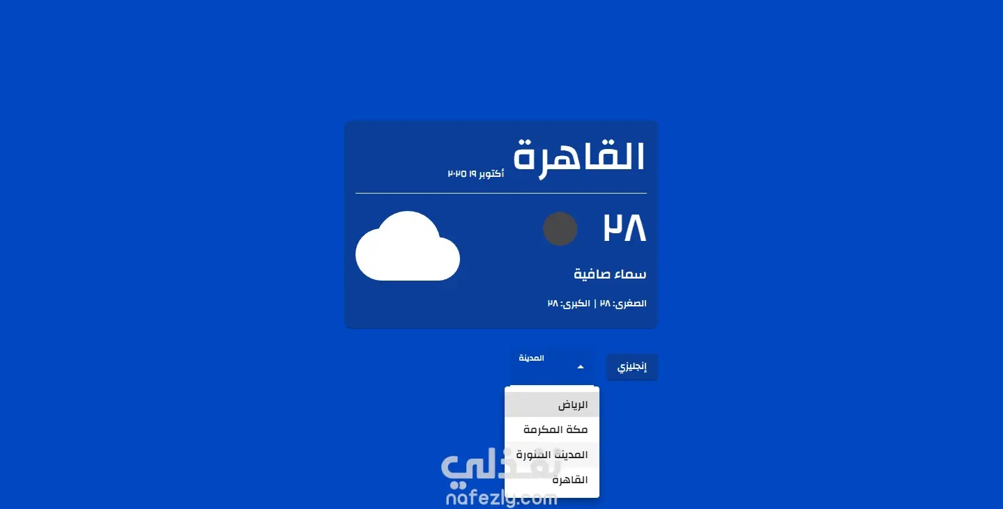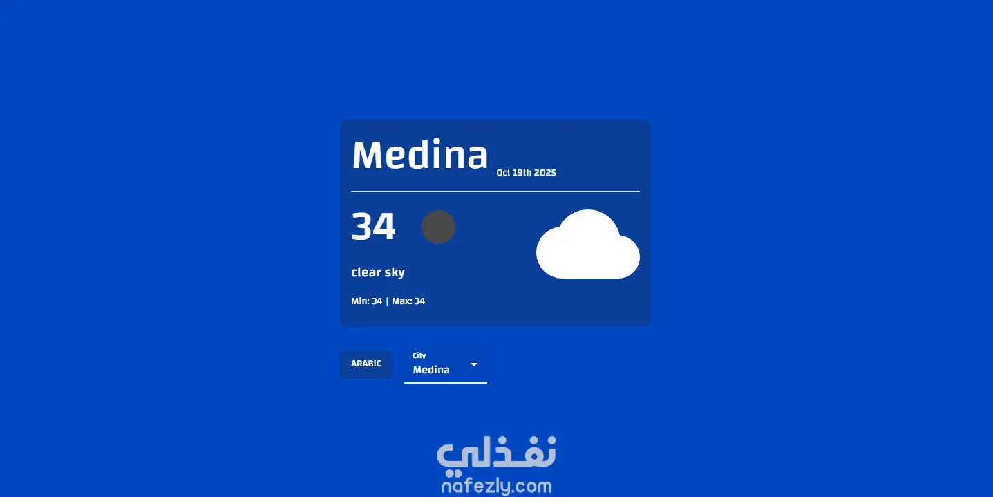 تطبيق طقس تفاعلي تم تطويره باستخدام React وMaterial UI، يتيح للمستخدم معرفة حالة الطقس الحالية وتفاصيلها بطريقة أنيقة وسهلة الاستخدام. يتميز التطبيق بواجهة عصرية متجاوبة تعمل على جميع الأجهزة، مع دعم تعدد اللغات من خلال i18next لتوفير تجربة مناسبة لمختلف المستخدمين. تم تصميم التطبيق بعناية ليعرض البيانات بشكل منظم وواضح، مع استخدام عناصر واجهة احترافية وألوان مريحة تعكس حالة الطقس بشكل جذاب.