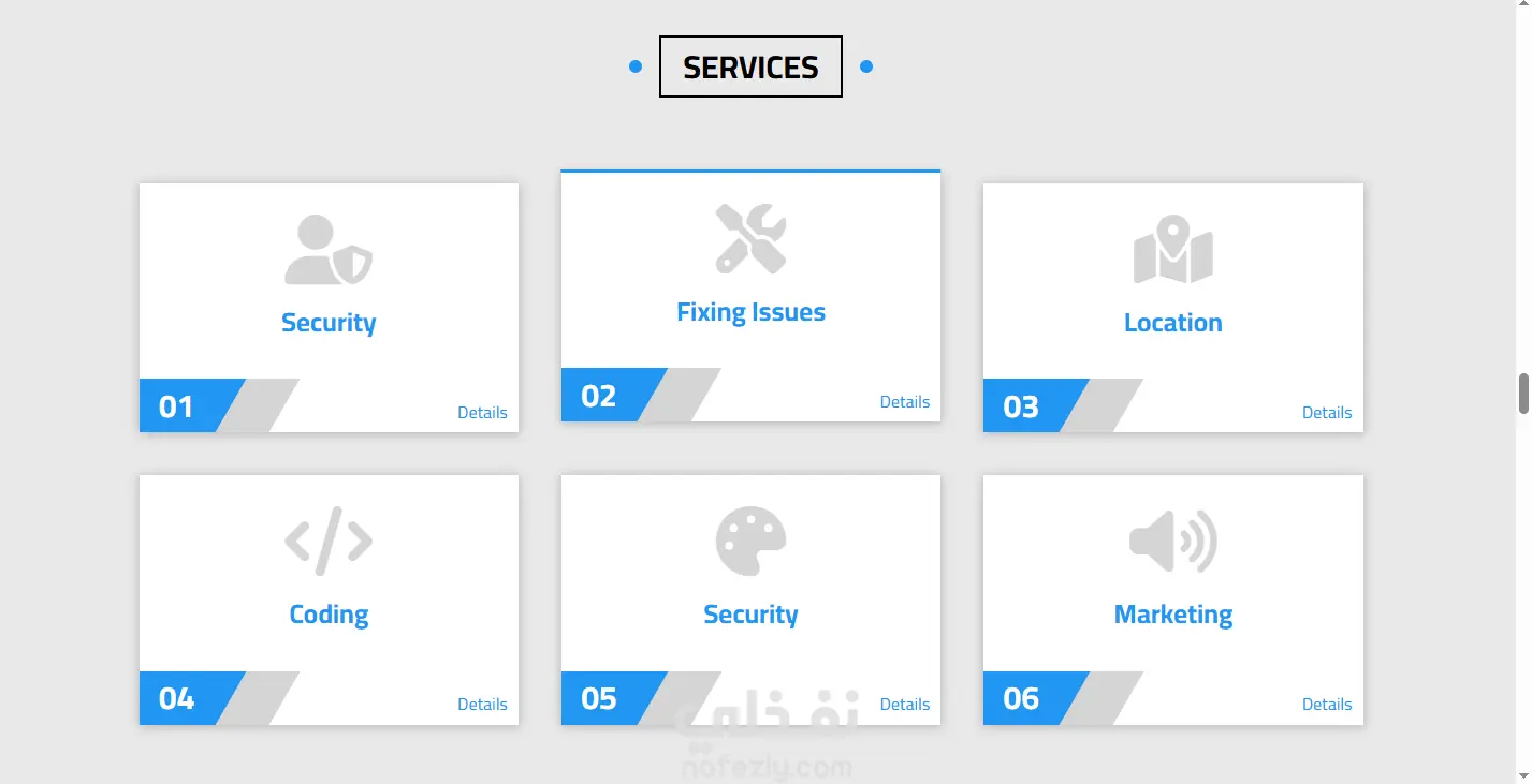 اهتمّيت بتفاصيل التصميم من حيث الألوان، التباعد، وتنظيم الأقسام زي (الخدمات – الأعمال – الفريق – التواصل)، علشان الشكل يكون متناسق وجذاب على كل الأجهزة.