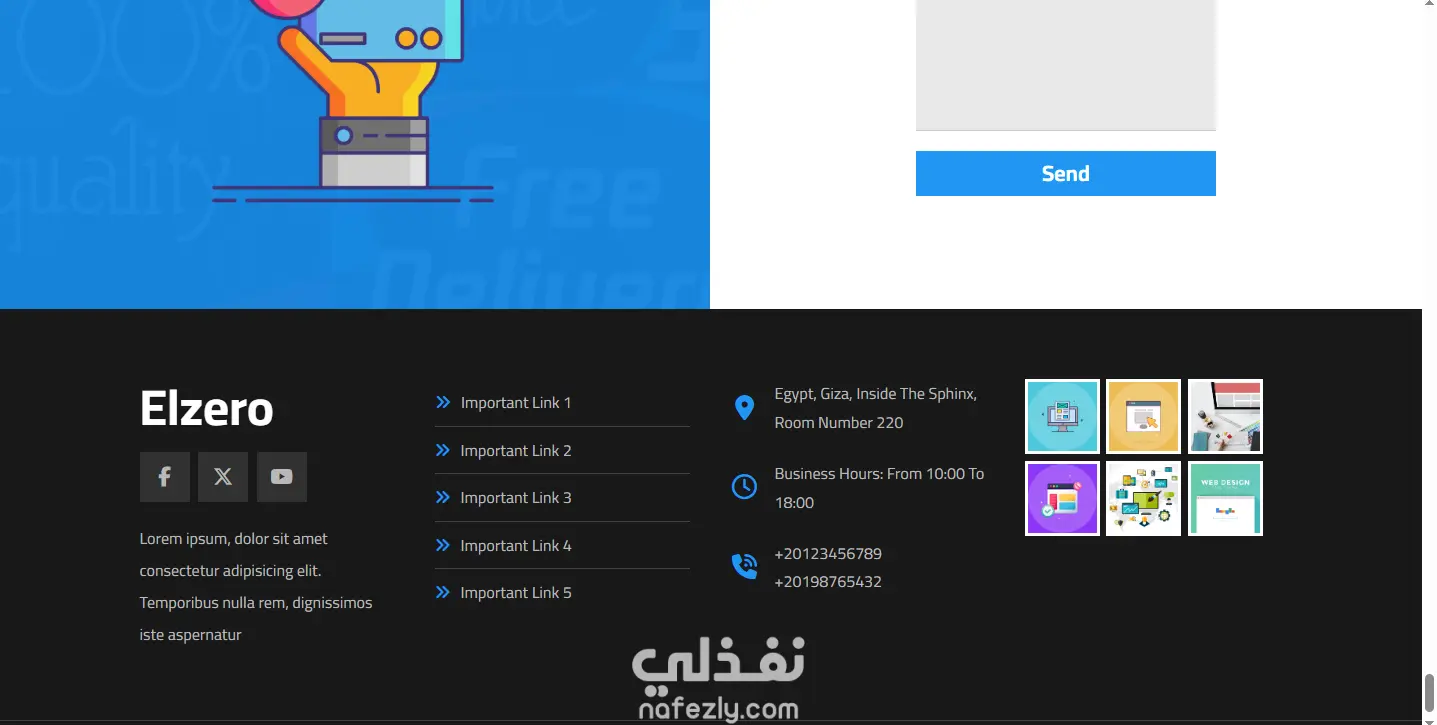 نفذت تصميم Elzero Template 3 باستخدام HTML وCSS فقط، وده كان مشروع هدفه إظهار مهاراتي في تنسيق الصفحات وبناء واجهات احترافية بدون أي مكتبات أو فريموركات.