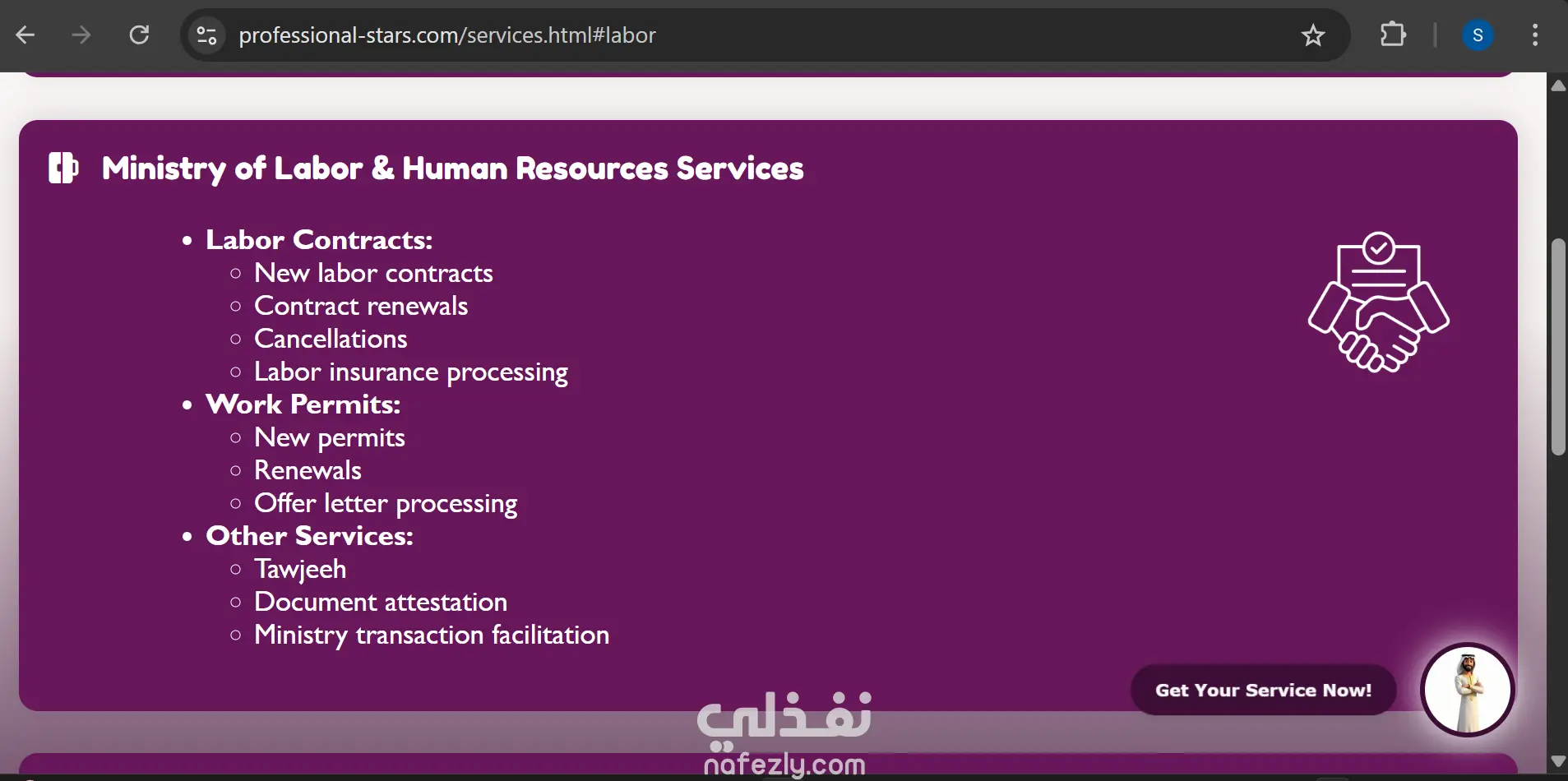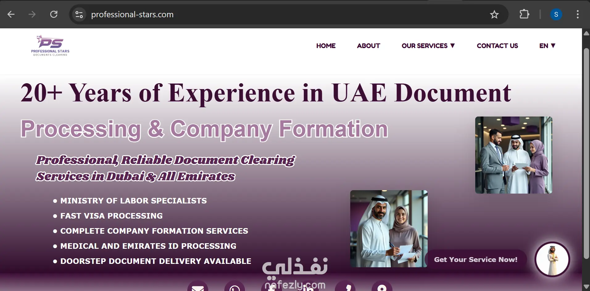تم تطوير موقع Professional Stars ليعرض خدمات الشركة في مجالات التأشيرات، وزارة العمل، تأسيس الشركات، والوثائق الرسمية، بطريقة عصرية وسهلة الاستخدام. الموقع متوفر باللغتين العربية والإنجليزية مع تصميم متجاوب يعمل بسلاسة على جميع الأجهزة. ما تم إنجازه تقنياً: بناء الموقع باستخدام HTML، CSS، وJavaScript من الصفر. إنشاء نسختين منفصلتين (عربية وإنجليزية) مع ضبط الاتجاه والوسوم الخاصة بالسيو. تصميم واجهة متجاوبة باستخدام Flexbox وGrid. إضافة أنيميشن وتأثيرات تفاعلية محسّنة للأداء. ربط زر "احصل على خدمتك الآن" بـ WhatsApp API للتواصل الفوري. قسم تواصل مميز يحتوي على خريطة جوجل، زر صعود للأعلى، وشعار واتساب عائم. الأدوات والتقنيات: HTML5 – CSS3 – JavaScript – Font Awesome – Google Fonts – GitHub Pages