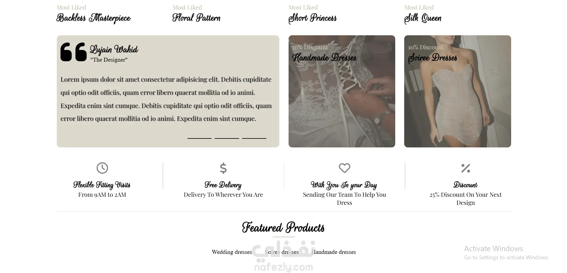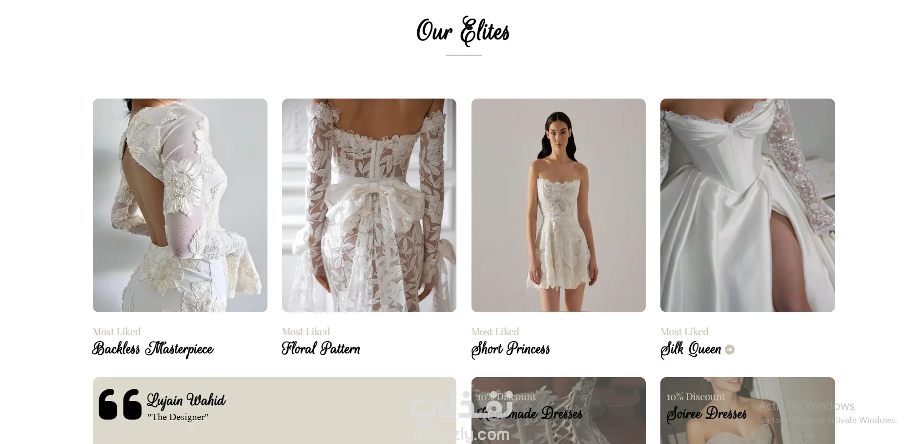 واجهة تصميم أمامية تم إنشاؤها باستخدام HTML5 وCSS3 بهدف عرض منتجات حفلات الزفاف والفساتين بطريقة احترافية وجذابة. التصميم يتضمّن صفحة رئيسية تعرض صور الفساتين، قسم خاص بكل منتج مع صورة ووصف، قائمة تنقّل واضحة وألوان أنثوية ناعمة تناسب طبيعة النشاط. الكود مُرتّب ومقسّم إلى ملفات منفصلة لسهولة التعديل والتوسعة.