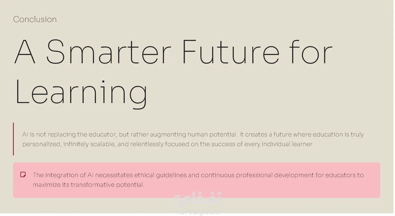 مقدمة: يعني إيه ذكاء اصطناعي وليه مهم. في التعليم عن بعد: بيستخدم لتحليل أداء الطلاب، تصحيح الواجبات، وتخصيص المحتوى. في التعلم الذاتي: بيساعد الطالب يتعلم لوحده من خلال اقتراح دروس وخطط مناسبة. أدوات: زي ChatGPT، Duolingo، Coursera AI، Grammarly، Khanmigo. الخاتمة: الذكاء الاصطناعي مش بديل للإنسان، لكنه بيساعد في تطوير التعليم ويخليه أسهل وأذكى.