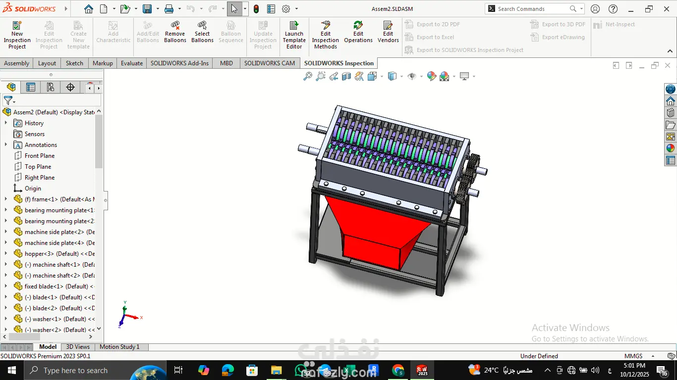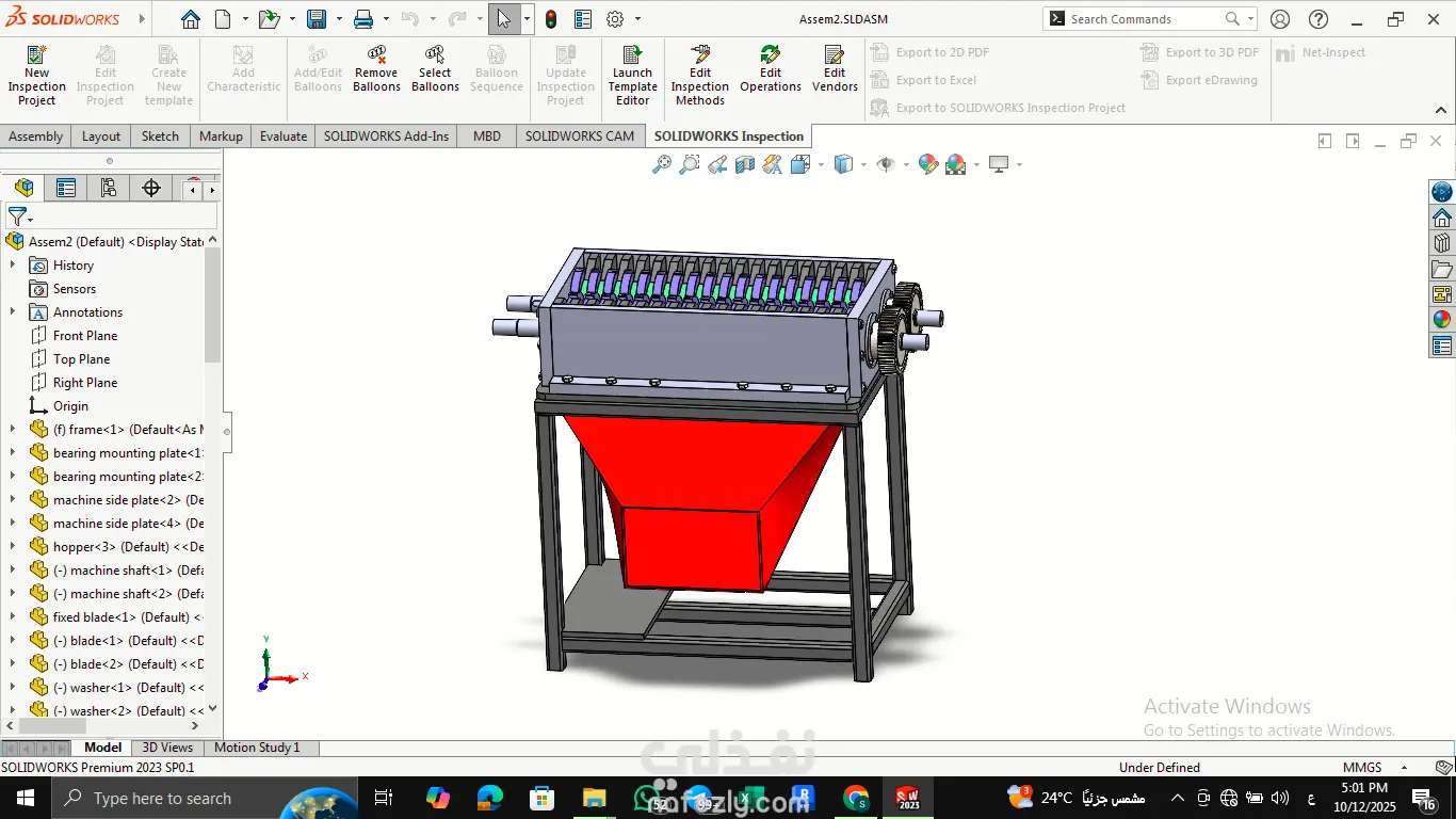 تصميم ماكينة فرم بلاستيك متكاملة (Plastic Shredder Machine Design)