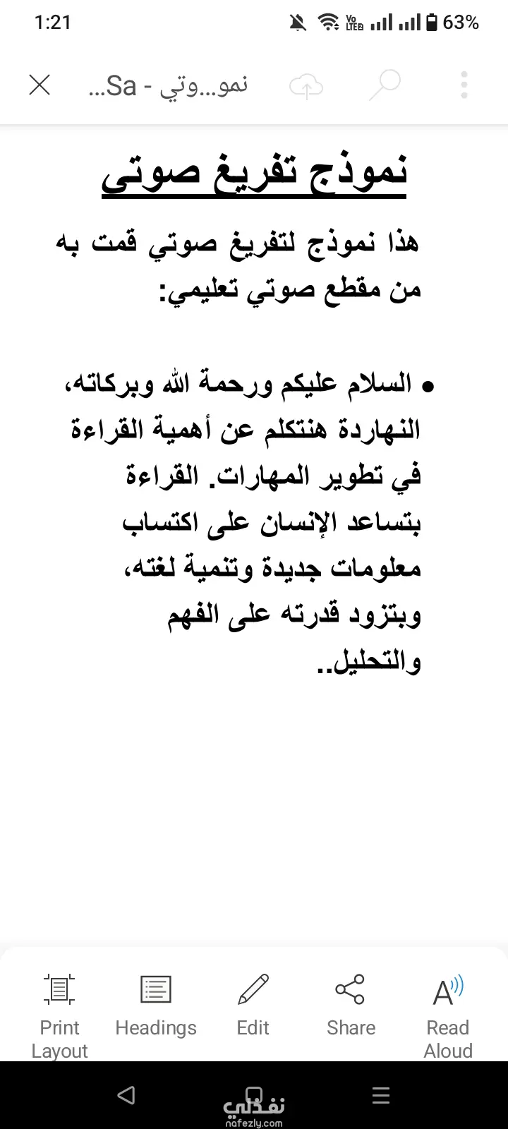 قمت بتفريغ صوتي لموضوع عن أهمية القراءة
