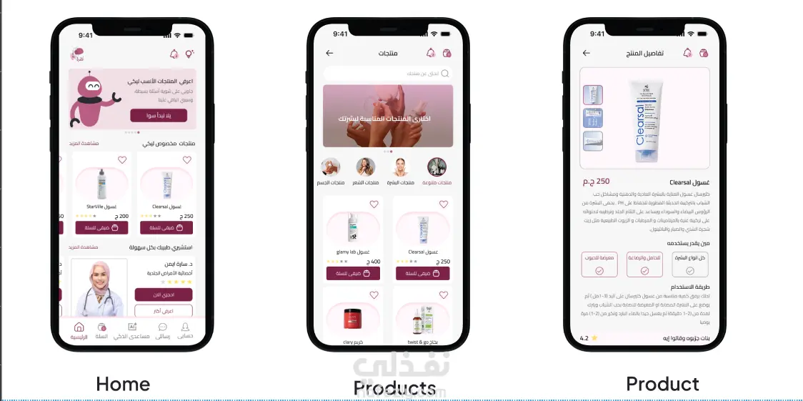 تطبيق نضرة اتصمّم علشان يقدّم للمرأة وسيلة آمنة وذكية تهتم بجمالها وصحتها. التركيز الأساسي كان على مساعدة الحوامل والمرضعات يختاروا منتجات مناسبة من غير مكونات ضارة ممكن تأثر على صحتهم أو صحة الطفل، بجانب توفير حلول شاملة للعناية اليومية. ✨ مزايا التطبيق: مساعد ذكي يقترح منتجات آمنة ومناسبة حسب حالة البشرة أو الشعر، مع مراعاة الحمل والرضاعة. شراء منتجات موثوقة مباشرة من التطبيق. حجز دكاترة سواء أونلاين للاستشارات الفورية أو أوفلاين لزيارات العيادات. نصائح ومقالات موثوقة للعناية والجمال. مجتمع للبنات لمشاركة التجارب والخبرات وتبادل الدعم.