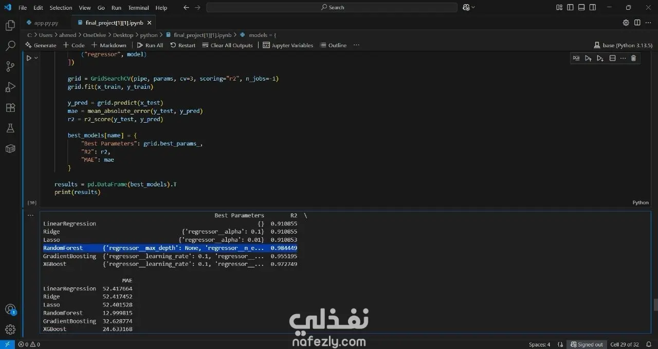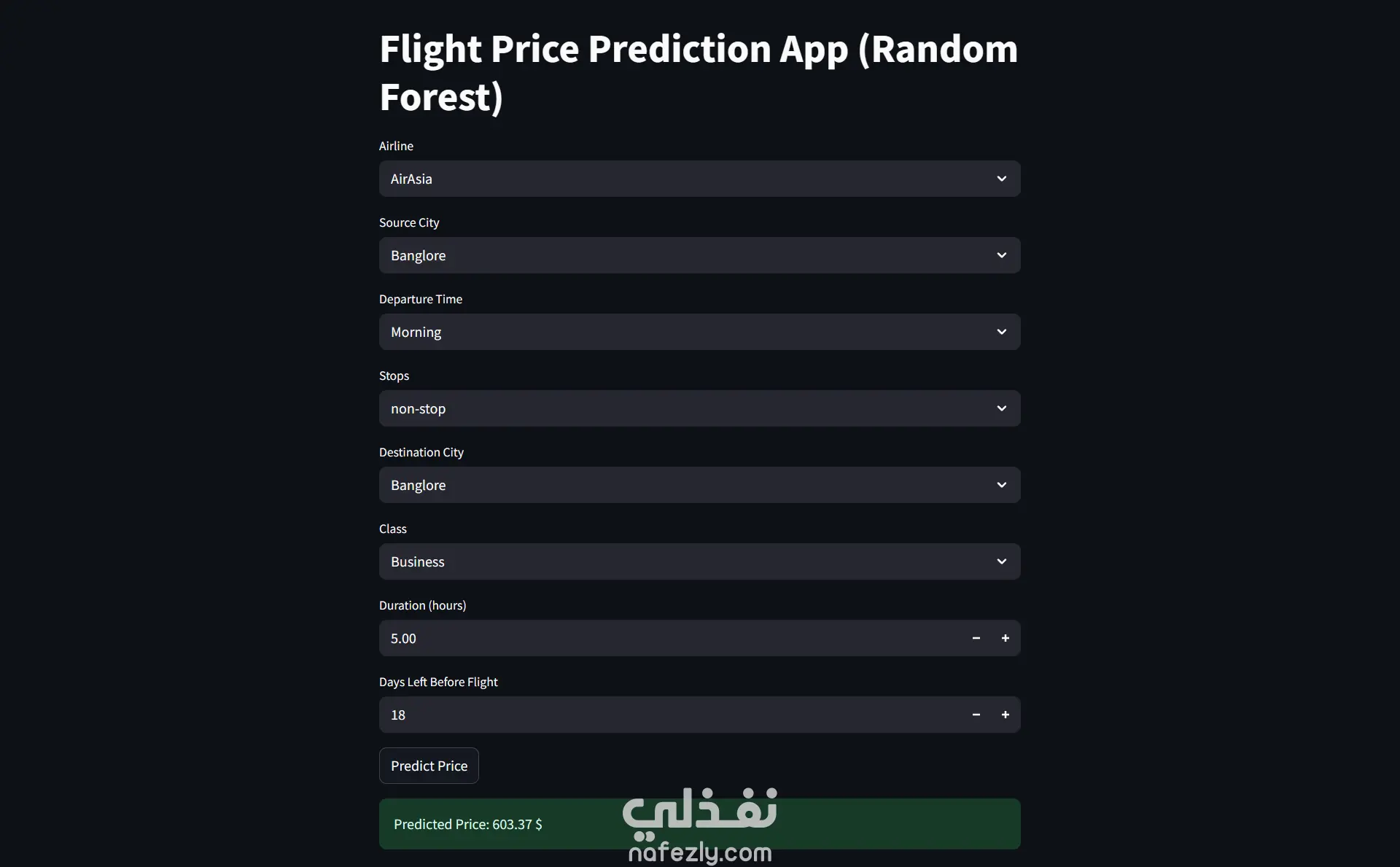 في هذا المشروع قمت بالعمل على مجموعة بيانات حجوزات الطيران التي تحتوي على معلومات تفصيلية عن الرحلات الجوية بين عدة مدن هندية. dataset كانت متاحة بصيغة CSV، وتم التعامل معها باستخدام مكتبة Pandas في بايثون، مع تطبيق خطوات تنظيف وتحليل البيانات، بالإضافة إلى تصميم لوحة معلومات تفاعلية (Dashboard) لعرض النتائج بشكل مرئي. أهم خطوات المشروع 1.تنظيف البيانات (Data Cleaning): 2.معالجة القيم المفقودة. 3.التأكد من تنسيقات الأعمدة (مثل التواريخ والأسعار). 4.تحويل الخصائص المشتقة مثل أوقات الوصول والمغادرة إلى تصنيفات واضحة. 5.تحليل البيانات (Data Analysis): 6.من خلال التحليل أجبنا على عدة أسئلة عملية مثل: 7.أكثر شركات الطيران تكرارًا في الرحلات. تصوير البيانات (Data Visualization): 1.استخدام الرسوم البيانية (Bar Charts & Line Charts) لعرض النتائج. 2.تصميم Dashboard لعرض العلاقات بين المتغيرات (Airline, Price, Class, Cities…). نموذج التنبؤ (Machine Learning Model) بعد التحليل، قمت ببناء نموذج تنبؤ لسعر التذكرة باستخدام خوارزمية Random Forest، وقد حقق دقة 98% على بيانات الاختبار. كذلك قمت بعمل نشر (Deployment) للنموذج بحيث يمكن للمستخدم إدخال بيانات الرحلة (مثل شركة الطيران، المدينة، وقت المغادرة، الكلاس …) ليقوم النموذج مباشرةً بالتنبؤ بسعر التذكرة.