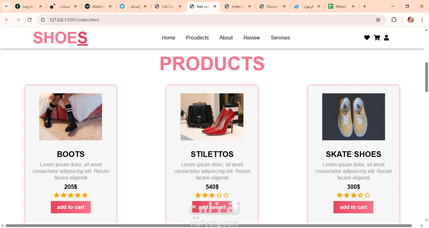 اسم المشروع: تصميم وتطوير متجر إلكتروني للأحذية (Shoes E-commerce Website)