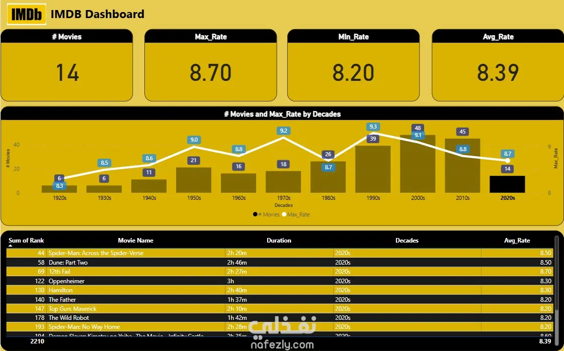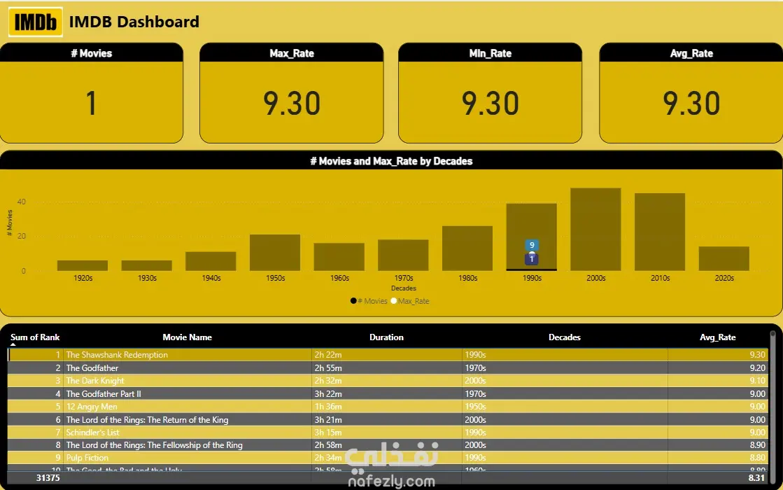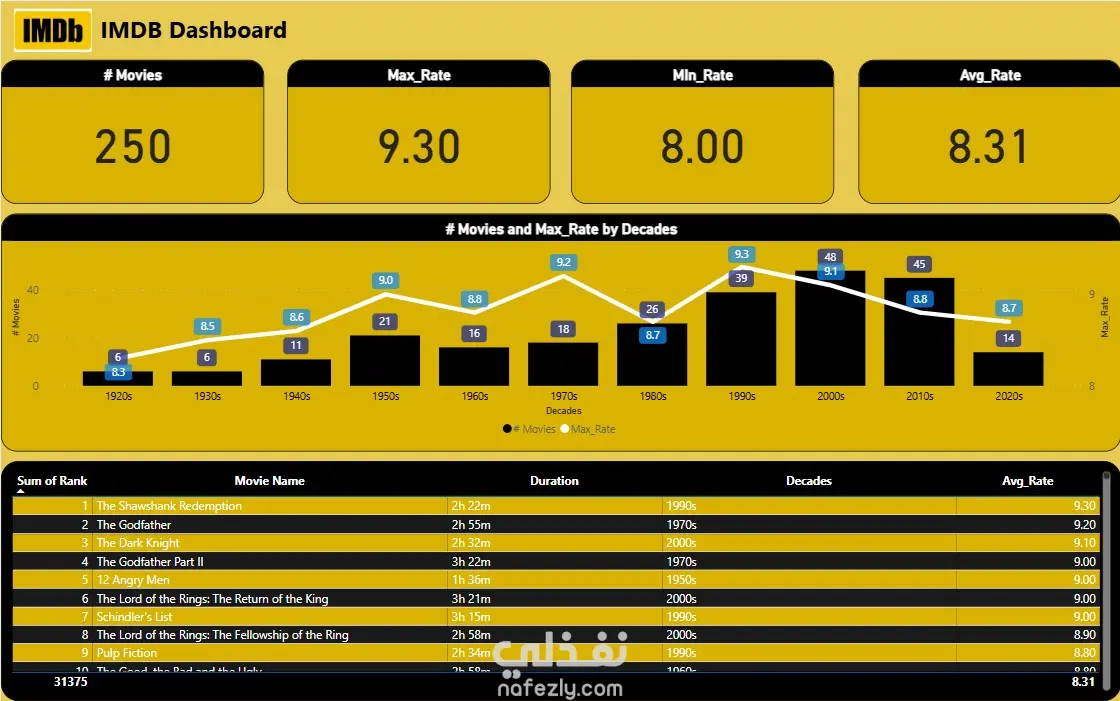 لوحة تحكم تفاعلية لأفضل 250 فيلم على موقع IMDb باستخدام Power BI