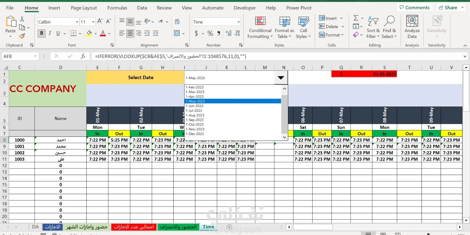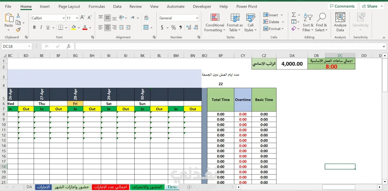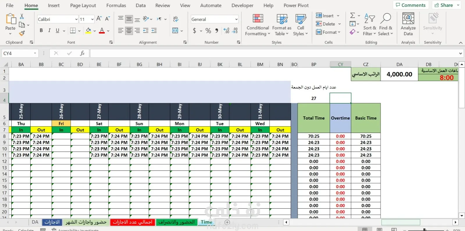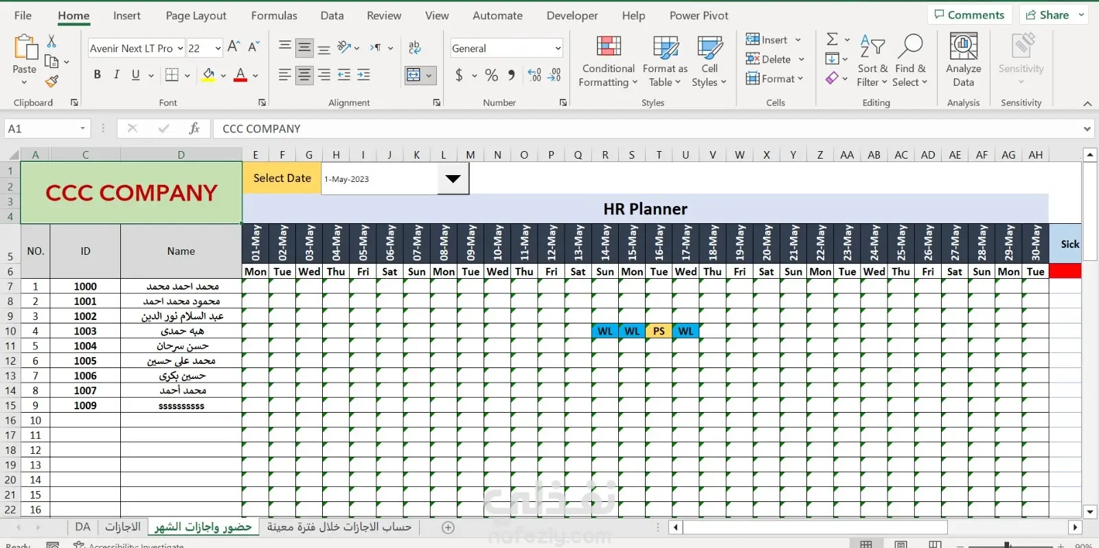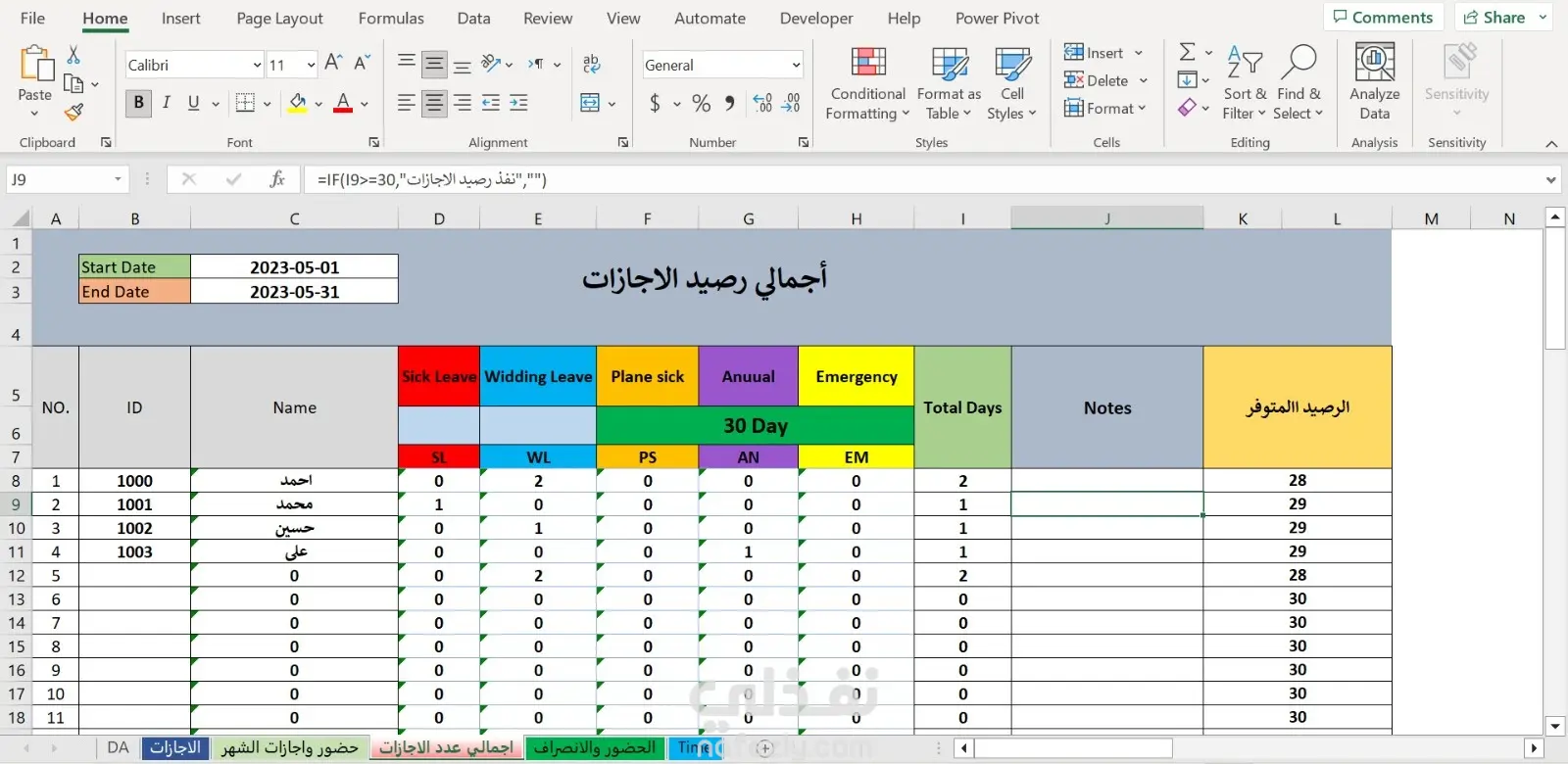 يمكنك الحصول علي علي اكسل شيت خاص بادارة الموظفين لديك وحساب ايام العمل والاجازات وتوقيتات الحضور والانصراف
