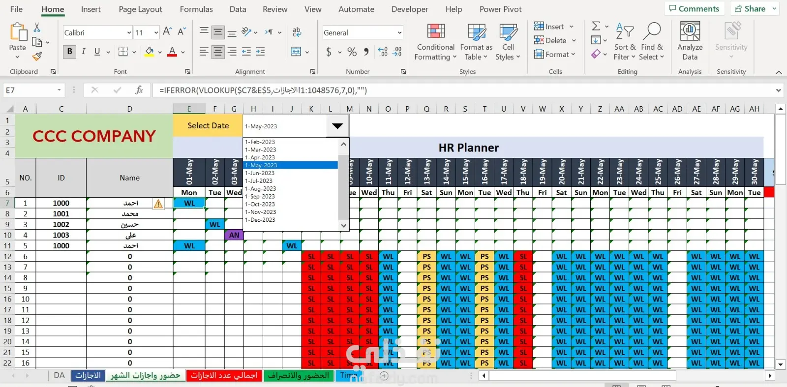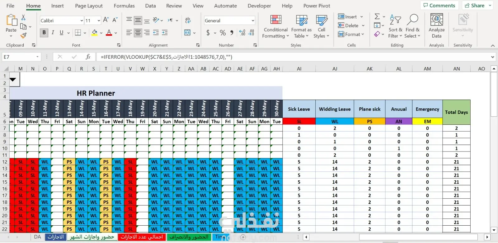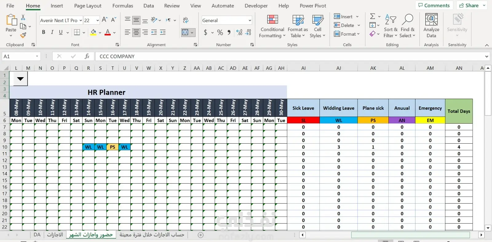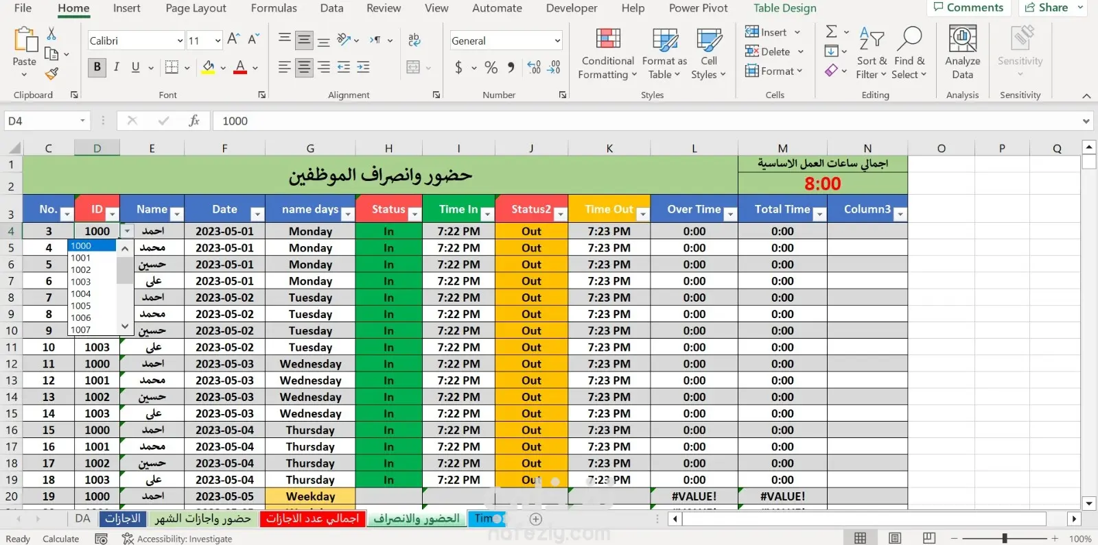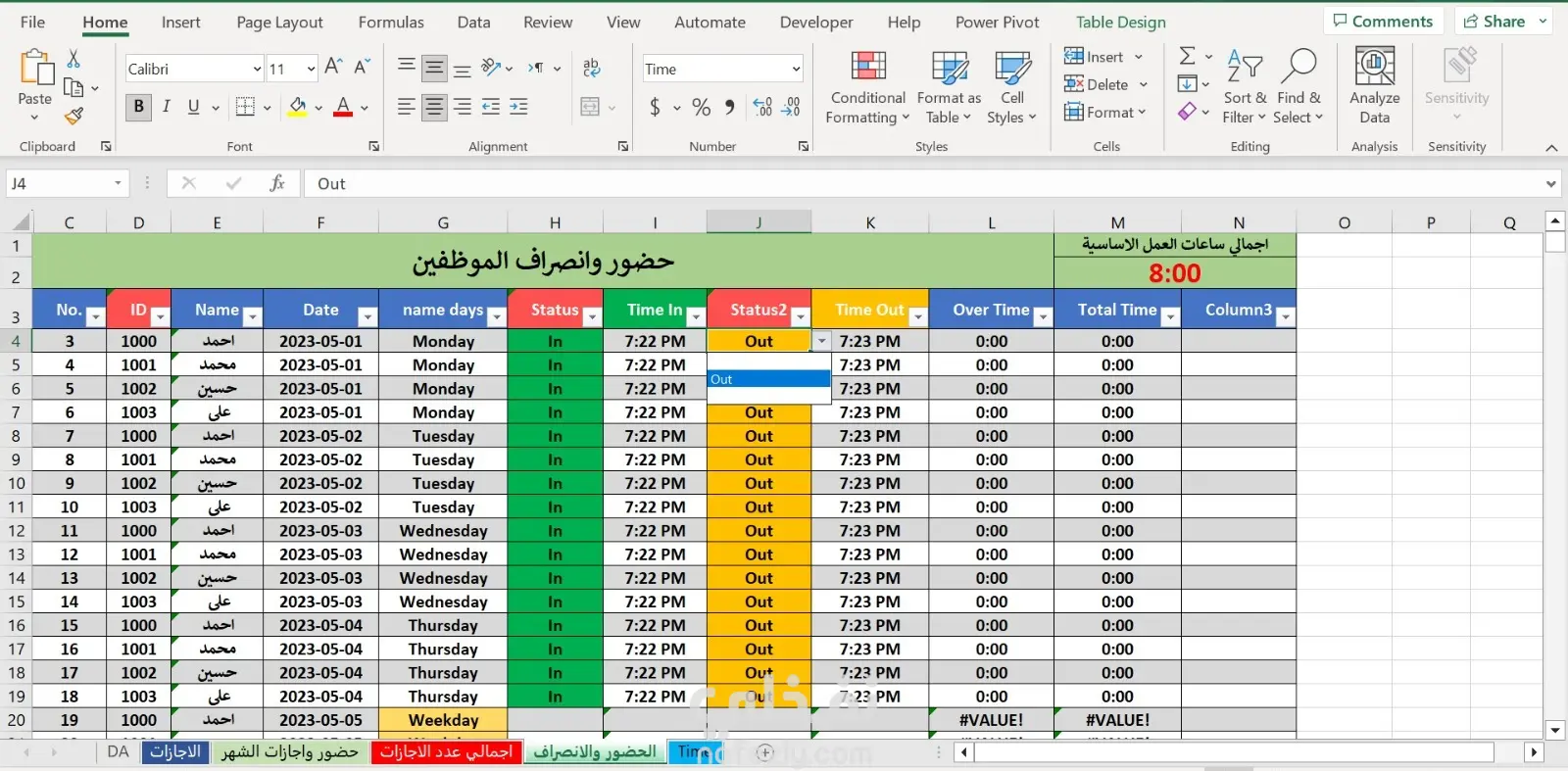 يمكنك الحصول علي علي اكسل شيت خاص بادارة الموظفين لديك وحساب ايام العمل والاجازات وتوقيتات الحضور والانصراف