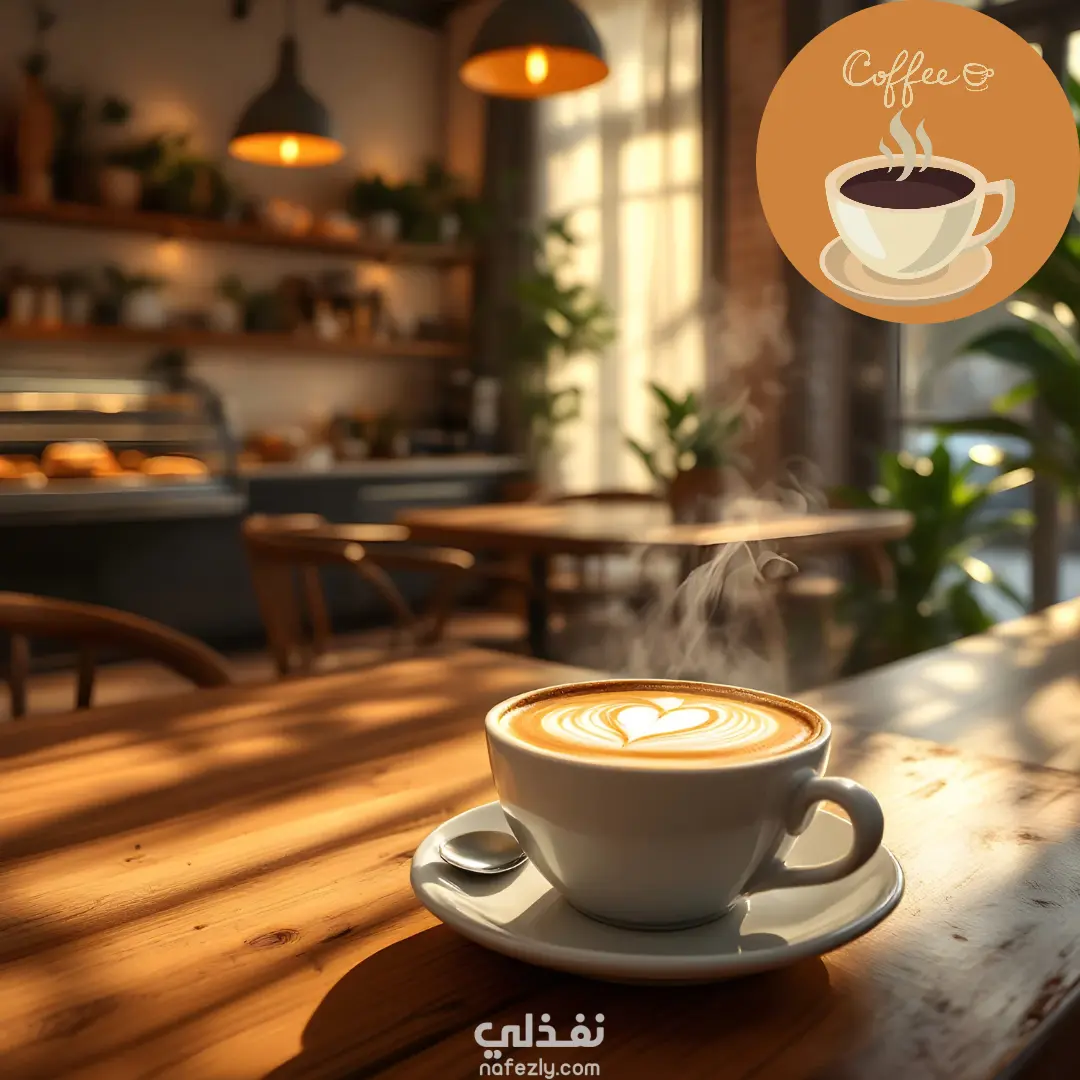 **الوصف:** هذا التصميم الرائع يجسد الأجواء الدافئة والمريحة لمقهى، حيث يتوسط المشهد فنجان قهوة بخار يتصاعد منه، مما يثير الشعور بالاسترخاء والتمتع. الألوان الدافئة والإضاءة الطبيعية تضيف لمسة من الألفة والراحة. **تفاصيل التصميم:** - **الخلفية:** مشهد داخلي لمقهى أنيق، مع تفاصيل مثل الأضواء المعلقة والرفوف المليئة بالمنتجات، مما يخلق جوًا مريحًا وجذابًا. - **العناصر الرئيسية:** - فنجان قهوة أبيض مع رسمة قلب على السطح، تعكس الحرفية والاهتمام بالتفاصيل. - بخار يتصاعد من الفنجان، مما يعزز من الإحساس بالدفء والراحة. - شعار بسيط يوضح اسم القهوة مع تصميم فنجان، مما يضيف لمسة احترافية. **الهدف من التصميم:** يهدف إلى جذب عشاق القهوة وتحفيزهم على زيارة المقهى أو تجربة المنتجات المعروضة. مثالي للاستخدام في الحملات الإعلانية، على وسائل التواصل الاجتماعي، أو في قوائم الطعام.
