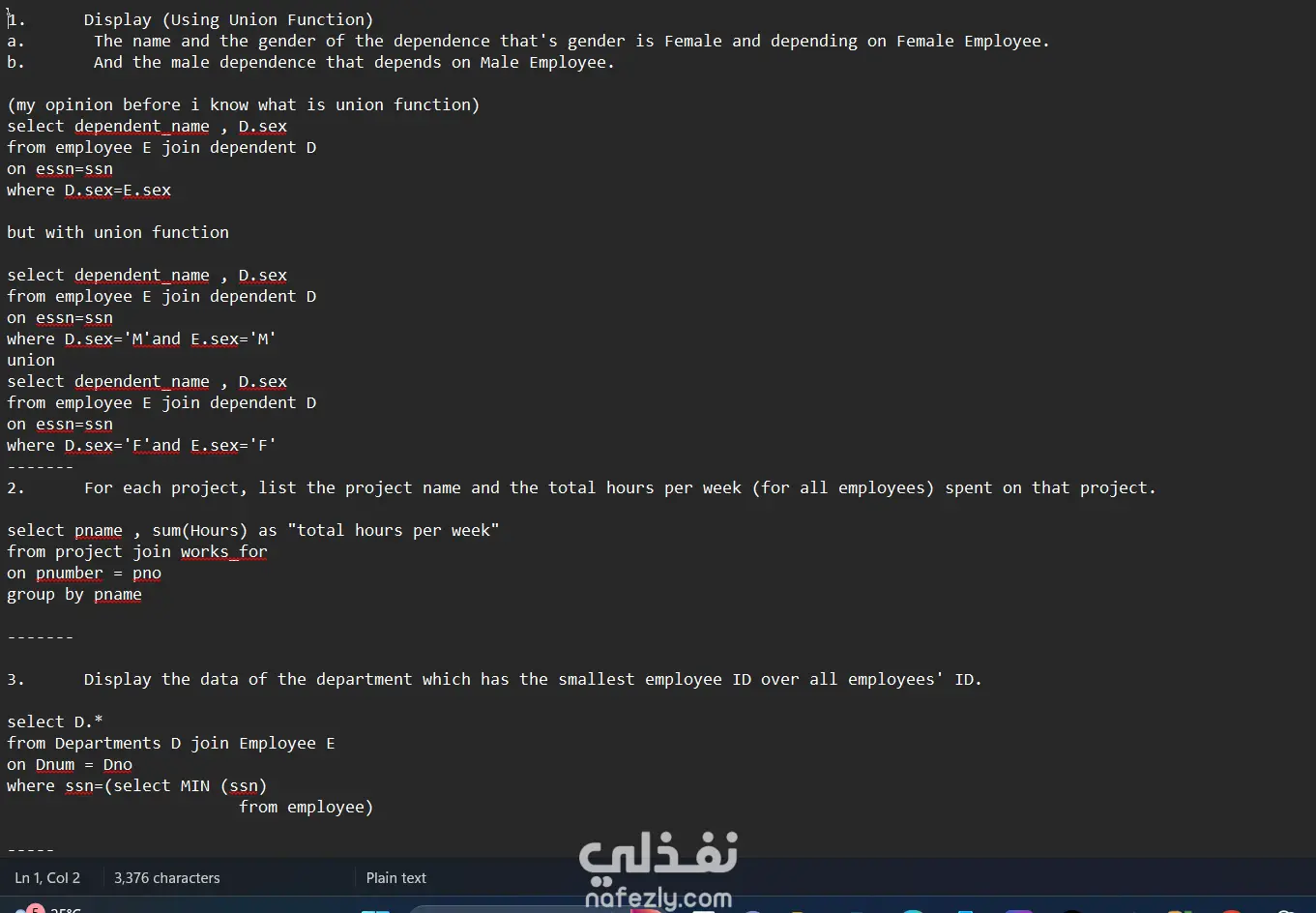 المشروع ده كان هدفه تطبيق المفاهيم الأساسية زي INNER JOIN وWHERE وLIKE وBETWEEN، بالإضافة لاستخدام الدوال المنطقية وطرق الترتيب المختلفة.
