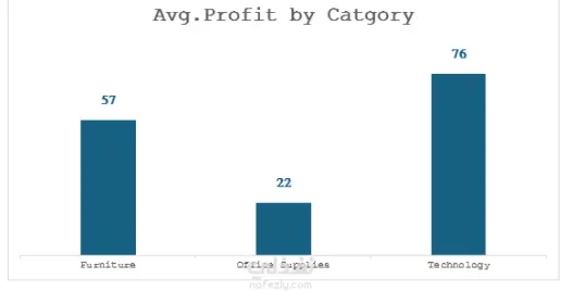 حساب متوسط الأرباح لكل فئة (Category) مثل الأثاث، المستلزمات المكتبية، والتكنولوجيا لتوضيح المنتجات الأكثر ربحية.