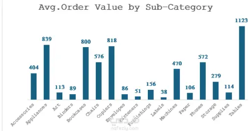 حساب متوسط قيمة الطلب حسب الفئة الفرعية (Sub-Category) لقياس سلوك الشراء وتوزيع الإنفاق.