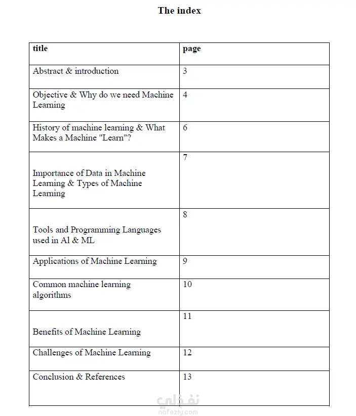 بحث عن تعلم الألة (Machine Learning )
