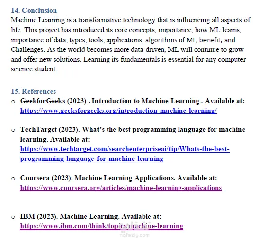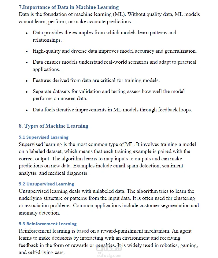 قمت بإعداد بحث شامل حول تقنية Machine Learning تناول المفهوم الأساسي للتعلم الآلي وكيفية اعتماد الأنظمة على البيانات لاكتساب الخبرة واتخاذ القرارات الذكية. ركزت في البحث على عرض الفكرة بطريقة مبسطة ومنظمة توضح أهم المفاهيم والتطبيقات العملية في مجالات مثل تحليل البيانات، والتعرف على الصور، والمساعدات الذكية. تم تنسيق البحث بطريقة أكاديمية منظمة، مع استخدام أسلوب واضح وسلس يسهل فهمه للقارئ غير المتخصص، بالإضافة إلى تصميم العناوين والتنسيق الداخلي بشكل احترافي. 🎯 الهدف من البحث هو توضيح كيف يغير التعلم الآلي أسلوب تعامل الأنظمة مع المعلومات ويجعلها أكثر ذكاءً وقدرة على اتخاذ القرارات.