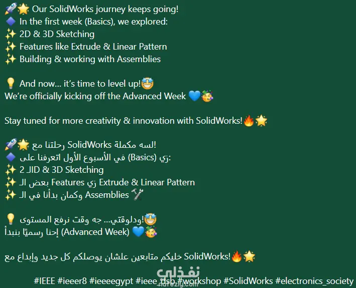 قمت بكتابة كابشنز ومنشورات متنوعة للسوشيال ميديا تشمل إعلانات لكورسات وورش وفعاليات مختلفة، بالإضافة إلى محتوى تفاعلي مخصص لزيادة التفاعل مع الجمهور على منصات مثل فيسبوك وإنستجرام. اعتمدت في عملي على أسلوب جذاب وواضح يعكس هوية كل منشور ويشجع الجمهور على المشاركة، مع مراعاة طبيعة كل منصة ونوع الجمهور المستهدف. كما أمتلك القدرة على كتابة المحتوى بالعربية والإنجليزية، وتقديم نسختين من نفس المنشور للحملات التي تستهدف أكثر من فئة أو لغة. 🎯 هدفي هو تقديم محتوى مؤثر ومميز يساعد العلامات والمشروعات على التواصل الفعّال مع جمهورها وبناء صورة احترافية على السوشيال ميديا.