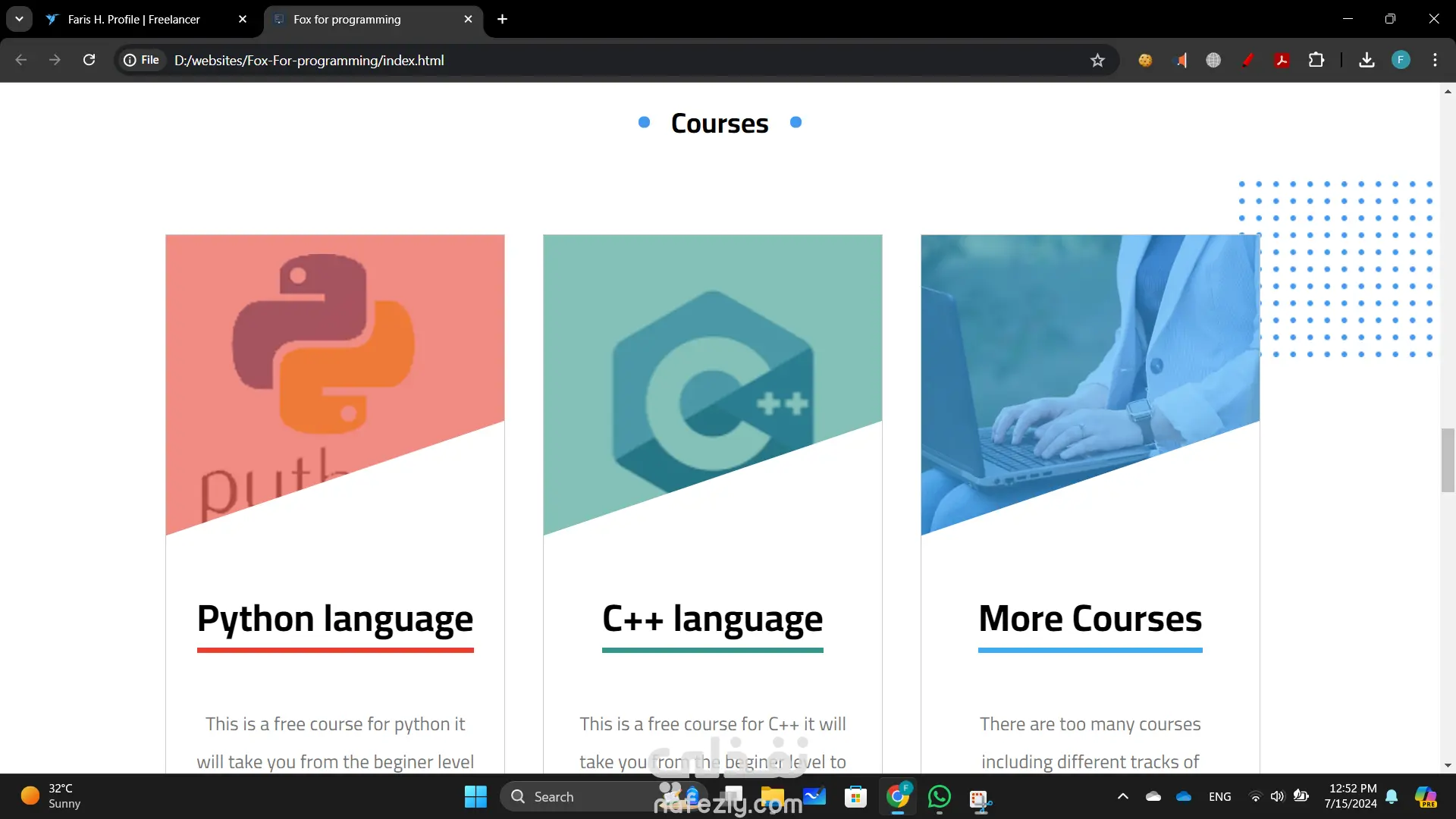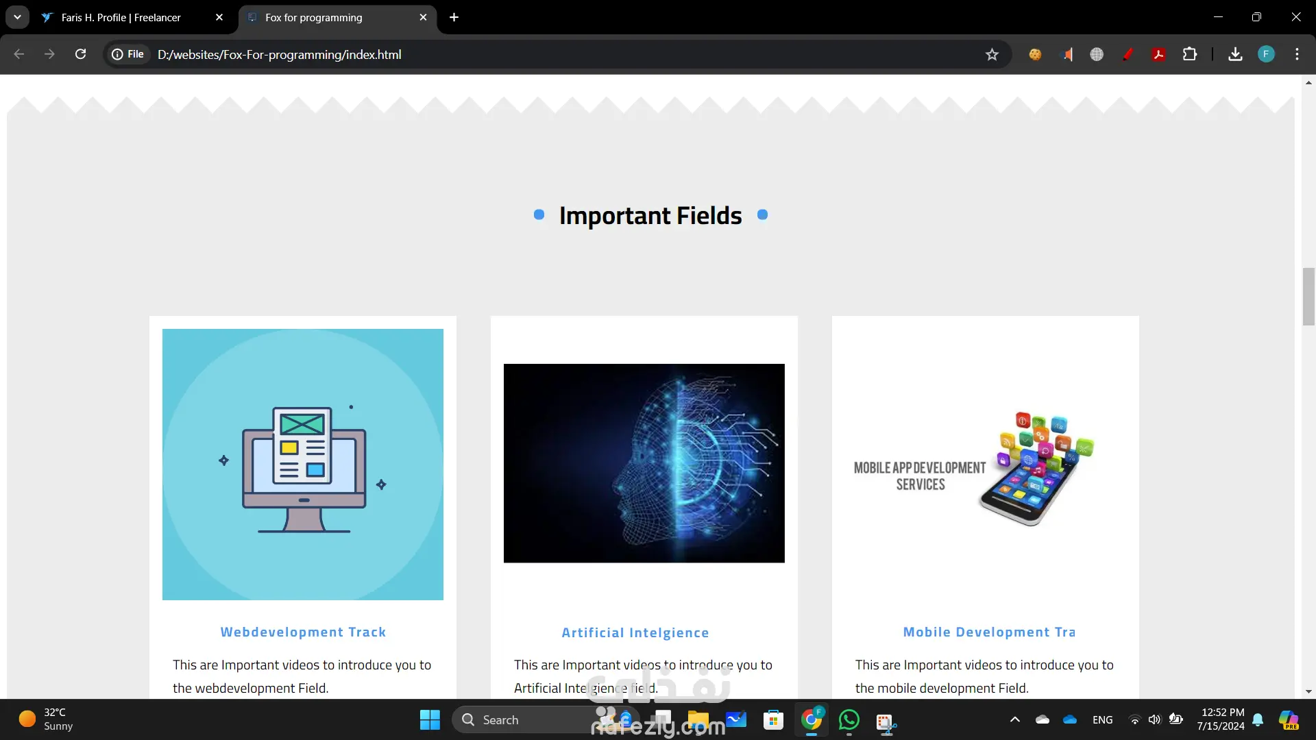 نقدم لكم قالب موقع مركز التعلم، المصمم لمساعدة المبرمجين الجدد على التعلم بفعالية. تم بناؤه باستخدام HTML وCSS وJavaScript للواجهة الأمامية، وSQL Server بالإضافة إلى .NET للواجهة الخلفية، ويقدم هذا القالب منصة شاملة للمحتوى التعليمي والتعلم التفاعلي. الميزات الرئيسية: - مسارات تعليمية منظمة: دروس منظمة بشكل جيد ترشد المتعلمين خلال رحلة تقدمية. - محتوى تفاعلي: اختبارات، تمارين برمجية، وتغذية راجعة في الوقت الحقيقي لتعزيز التفاعل. - واجهة سهلة الاستخدام: تصميم نظيف وبديهي ومتجاوب لتسهيل التنقل. - واجهة خلفية قوية: دعم SQL Server و.NET لإدارة المستخدمين وتتبع التقدم بشكل موثوق. - التخصيص والمرونة: سهل التحديث والتوسيع بدروس وميزات جديدة. - بيئة غنية بالموارد: الوصول إلى وثائق، نماذج كود، ومنتديات المجتمع. - تتبع التقدم: مؤشرات بصرية وتقارير مفصلة لتحفيز المتعلمين.