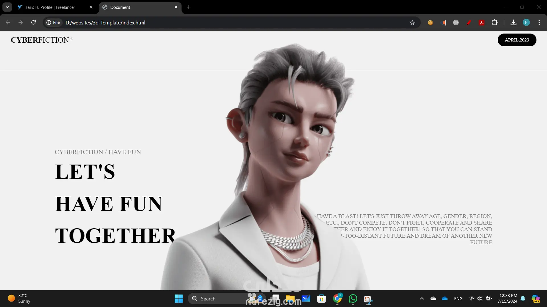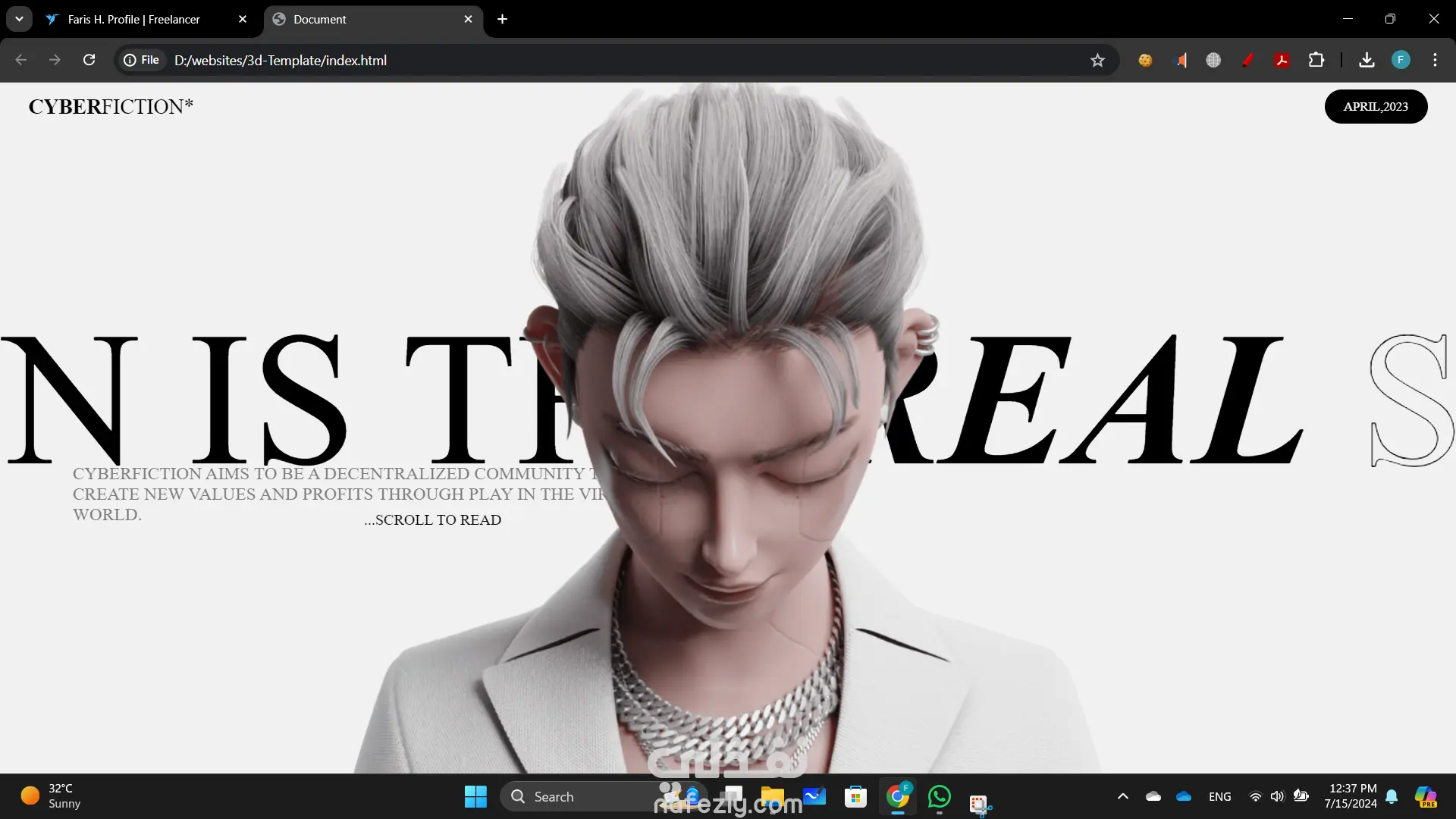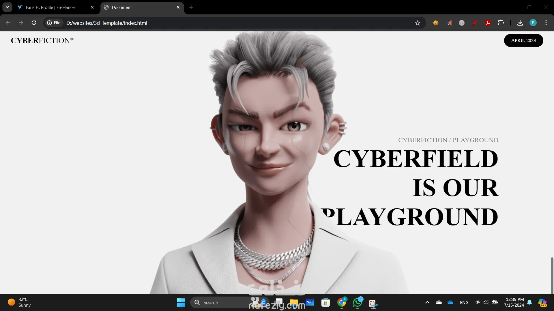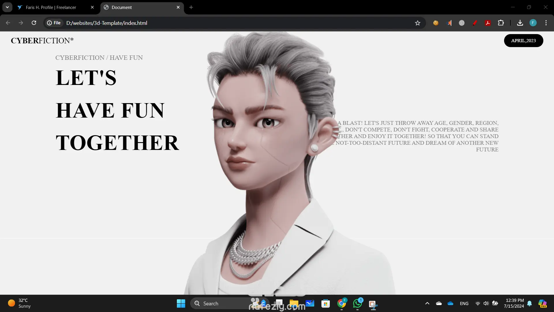 عن قالب الموقع: مرحبًا بكم في قالب الموقع المبتكر والجذاب بصريًا، المصمم بعناية فائقة باستخدام HTML وCSS وJavaScript. يتميز هذا القالب الفريد بشخصية ثلاثية الأبعاد أنثوية ديناميكية تضفي لمسة من الواقعية والتفاعل على تجربتك على الويب. الميزات الرئيسية: - نمذجة الشخصية ثلاثية الأبعاد: يعرض قالبنا شخصية ثلاثية الأبعاد أنثوية مصممة بشكل جميل، تم إنشاؤها بدقة لضمان مرئيات عالية الجودة وحركات واقعية. - التمرير التفاعلي: أثناء التمرير لأسفل في الموقع، تنبض الشخصية ثلاثية الأبعاد بالحياة، حيث تستجيب لأفعالك بحركات سلسة وواقعية. شاهدها تتحرك، وتعدل وضعها، وتتفاعل مع المحتوى أثناء التنقل عبر الموقع. - حركات العين والكاميرا الواقعية: لتعزيز التجربة الغامرة، تتابع عيون الشخصية والكاميرا حركات التمرير الخاصة بالمستخدم بشكل ديناميكي.