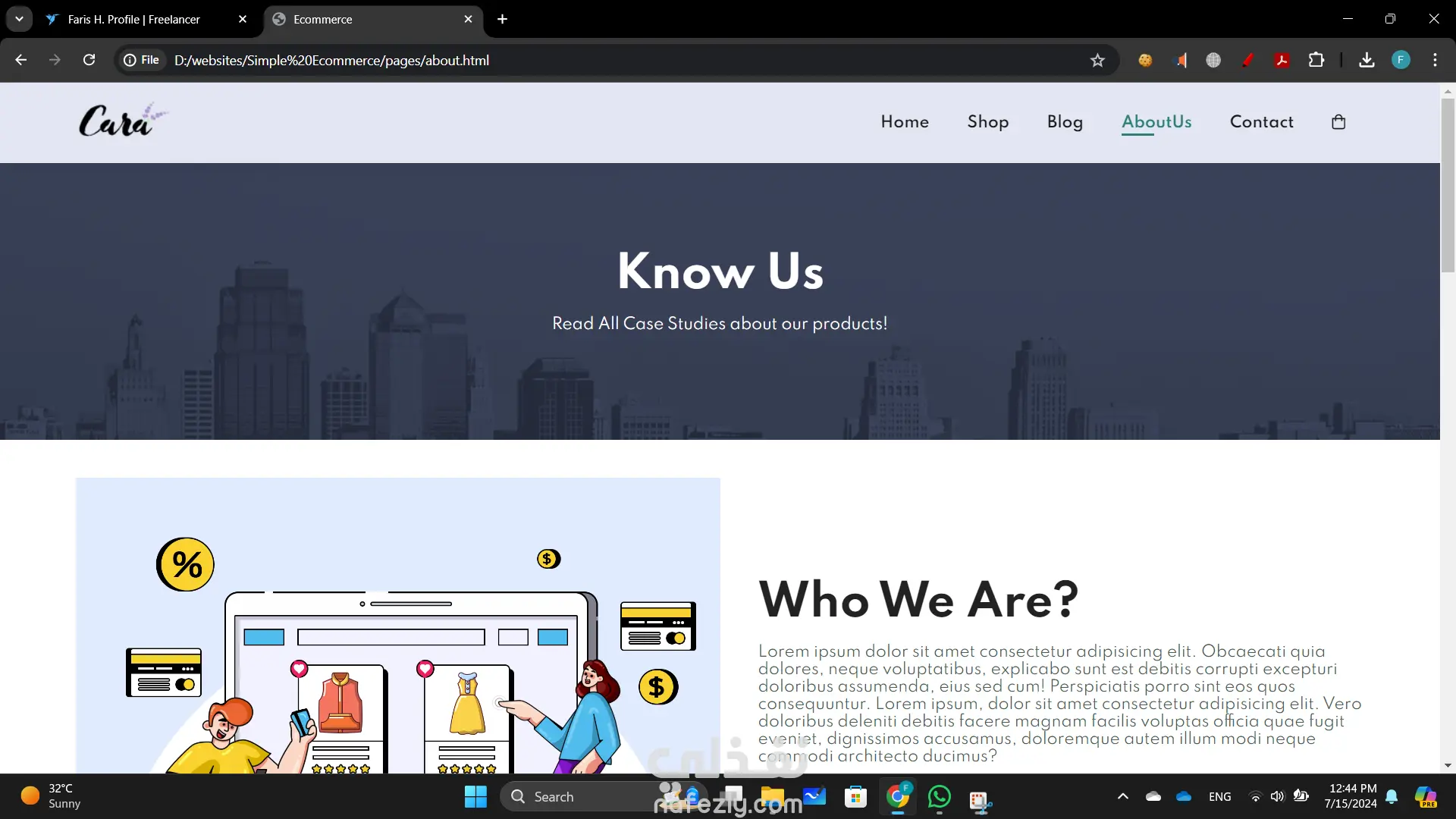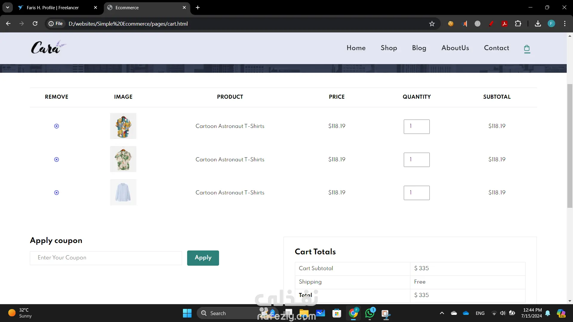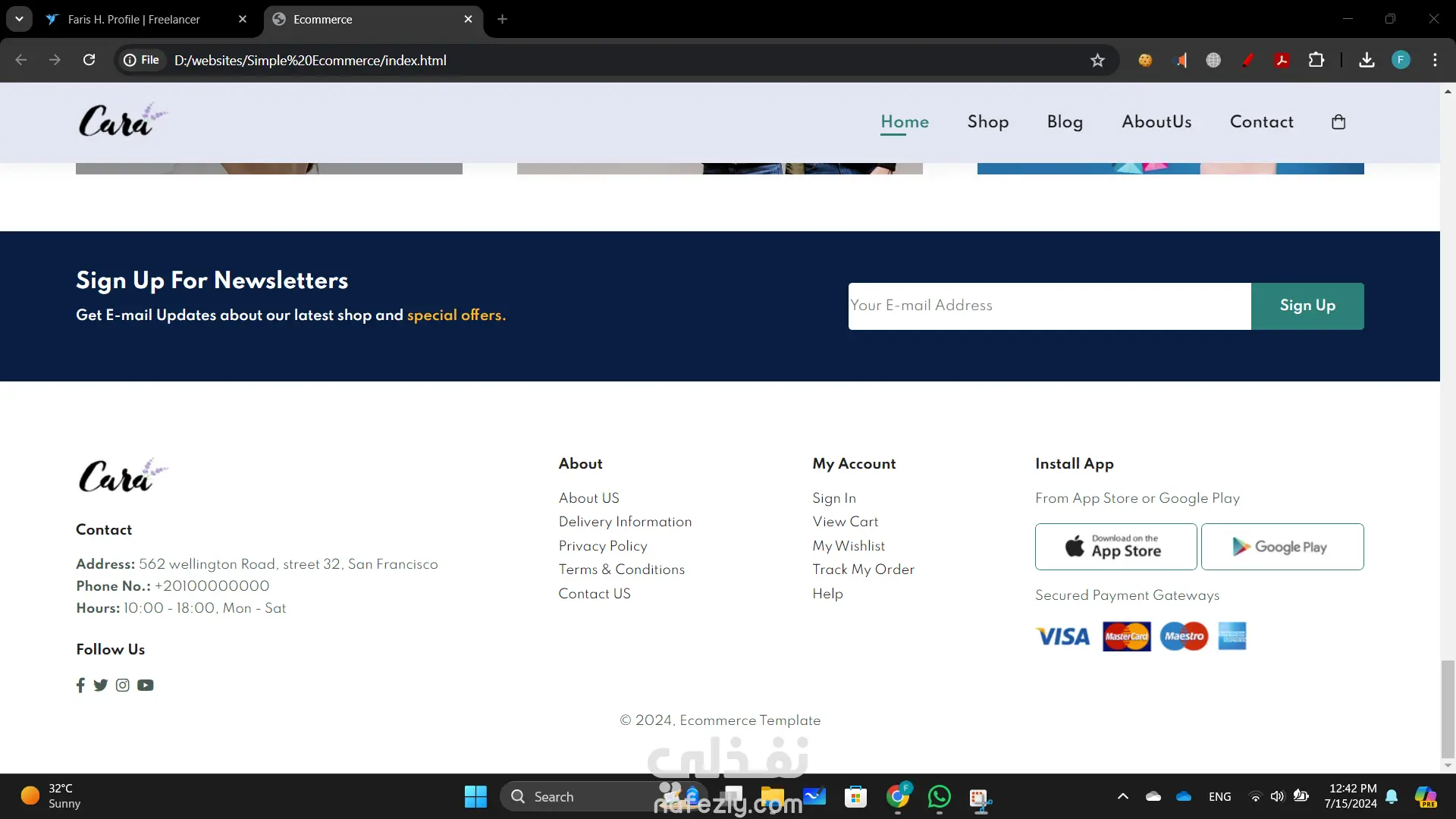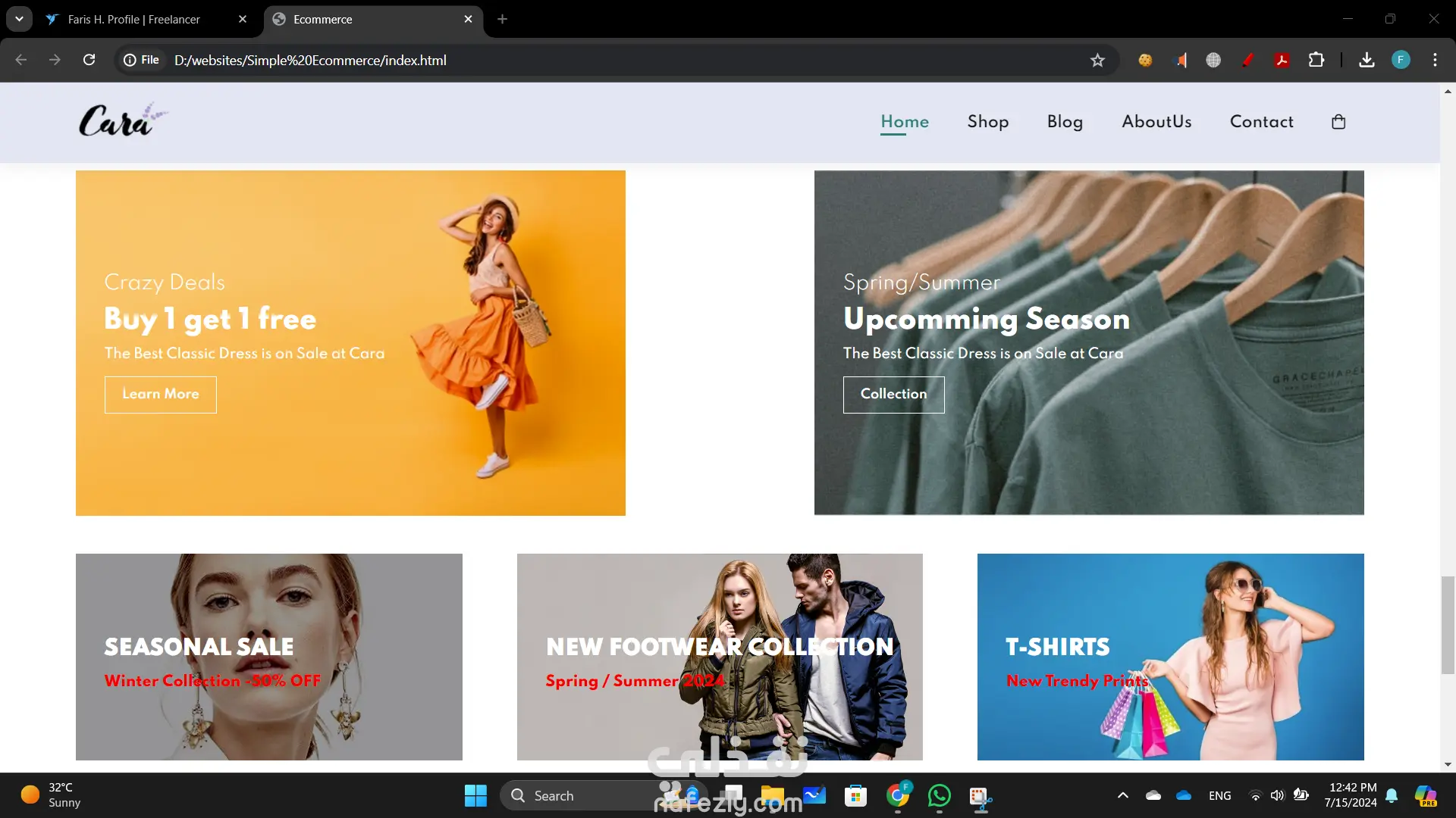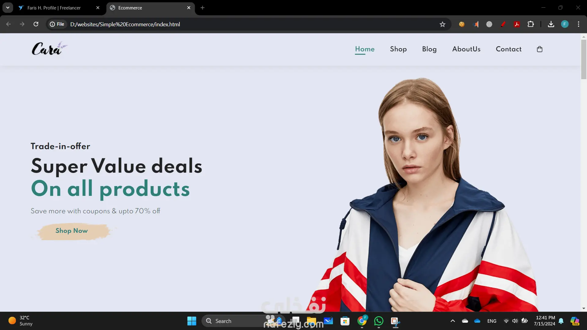 بناء موقع تجارة إلكترونية أنشأت موقع تجارة إلكترونية ديناميكي وسهل الاستخدام باستخدام HTML وCSS وJavaScript لتوفير تجربة تسوق سلسة. التصميم الأمامي ليس فقط جذاب بصريًا ولكنه أيضًا عالي الوظائف، مما يضمن رحلة مستخدم بديهية من تصفح المنتجات إلى إتمام الشراء. تشمل الميزات الرئيسية لهذا المشروع: تصميم متجاوب: الموقع متجاوب تمامًا، مما يوفر تجربة عرض مثالية عبر مختلف الأجهزة، من أجهزة الكمبيوتر المكتبية إلى الهواتف الذكية. واجهة مستخدم تفاعلية: استخدمت JavaScript لتحسين تفاعلات المستخدم، بما في ذلك معارض المنتجات الديناميكية، والتحقق من صحة النماذج في الوقت الحقيقي، ووظائف عربة التسوق التفاعلية. كود نظيف ومنظم: هيكل HTML هو دلالي ومنظم جيدًا، مما يجعل من السهل الصيانة والتوسع. CSS هو معياري ويتبع أفضل الممارسات للتصميم، مما يضمن التناسق وقابلية إعادة الاستخدام. تصميم يركز على المستخدم: ركزت على إنشاء واجهة جذابة وسهلة التنقل، مع دعوات واضحة للعمل وعناصر تصميم سهلة الوصول.