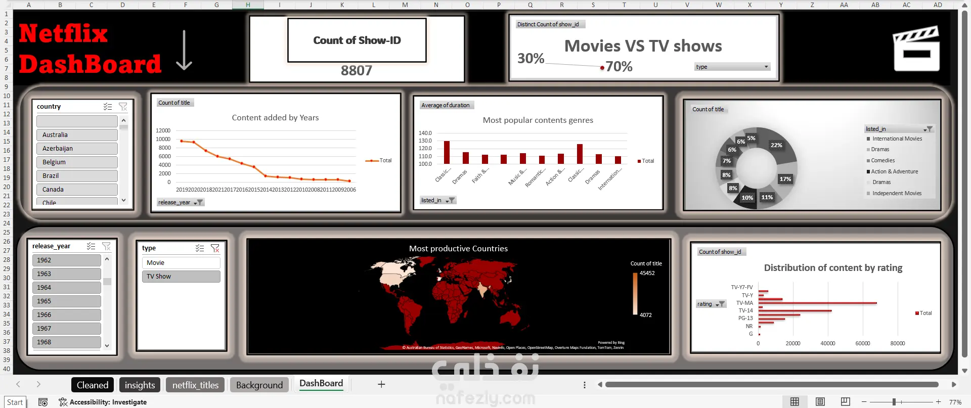 تحليل بيانات نتفلكس وعمل داش بورد