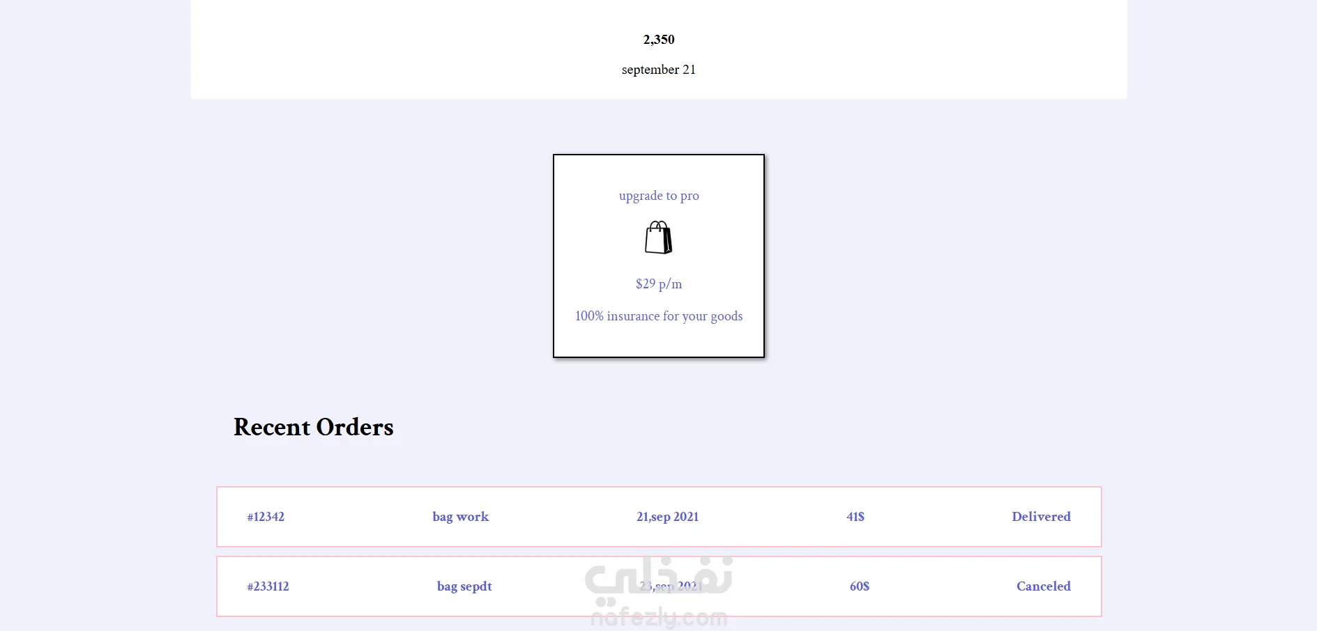 جدول الطلبات الأخيرة: يعرض تفاصيل أحدث الطلبات مع التاريخ والحالة والمبلغ.
