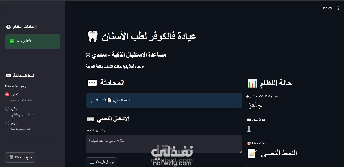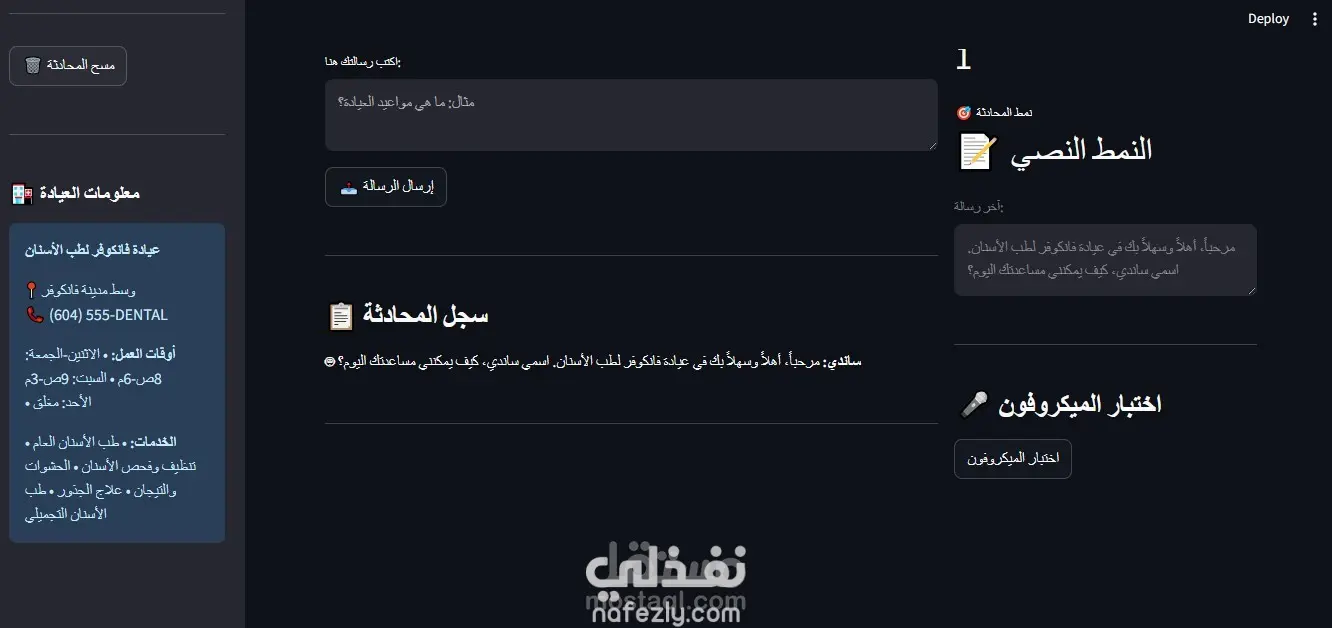 مساعد صوتي ونصى ذكي باللغة العربية لعيادة فانكوفر لطب الأسنان